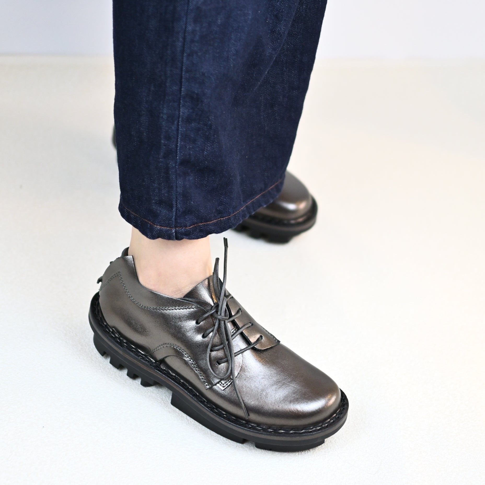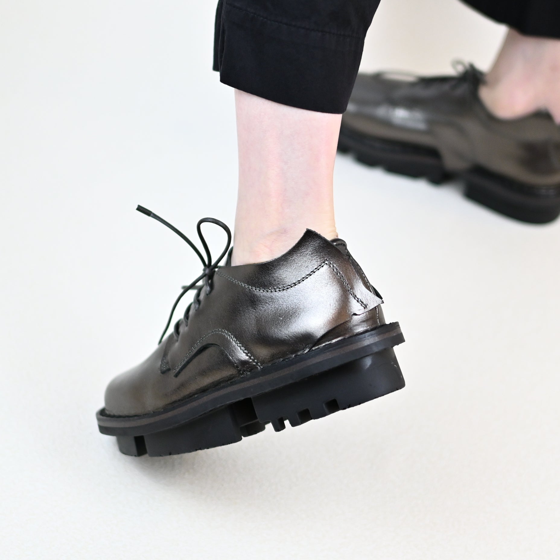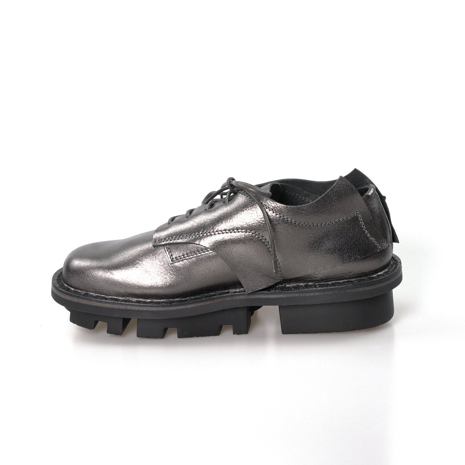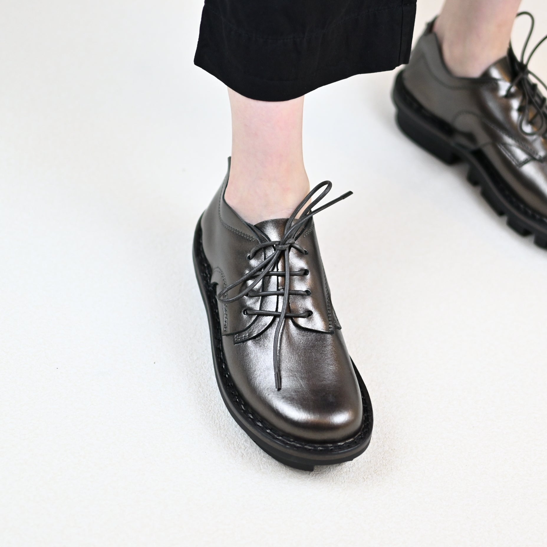 Becoming is a contemporary interpretation of the classic derby shoe, defined by a layered construction that balances form and function. The deconstructed derby section appears to float above the shoe, creating a sense of lightness while maintaining a secure structure. The traditional lacing anchors the foot, offering support and a customisable fit.