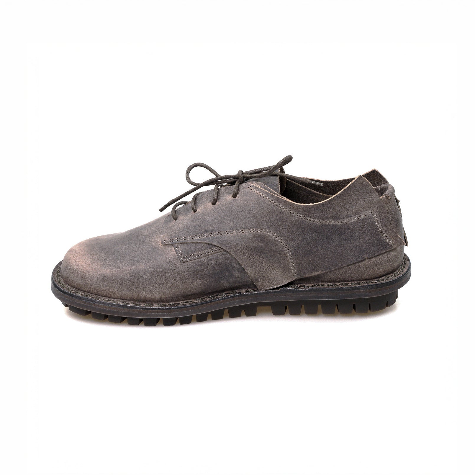 Becoming is a modern lace up style that reinterprets the classic derby with a deconstructed approach. The outer panel appears to float above the upper, adding dimension and lightness to the form. Traditional lacing ensures a secure fit, while the rugged outsole provides stability and grip for everyday wear.