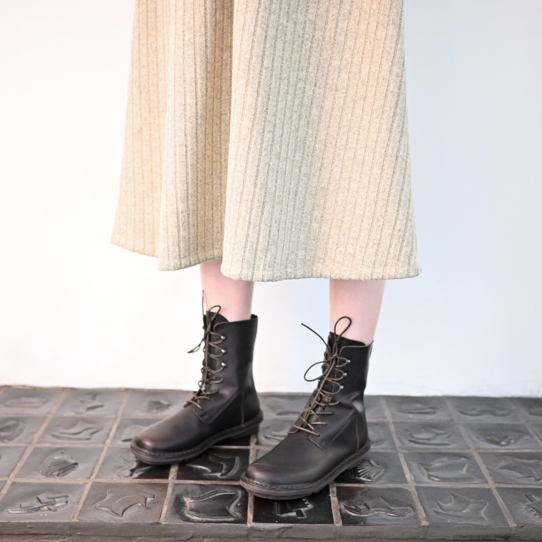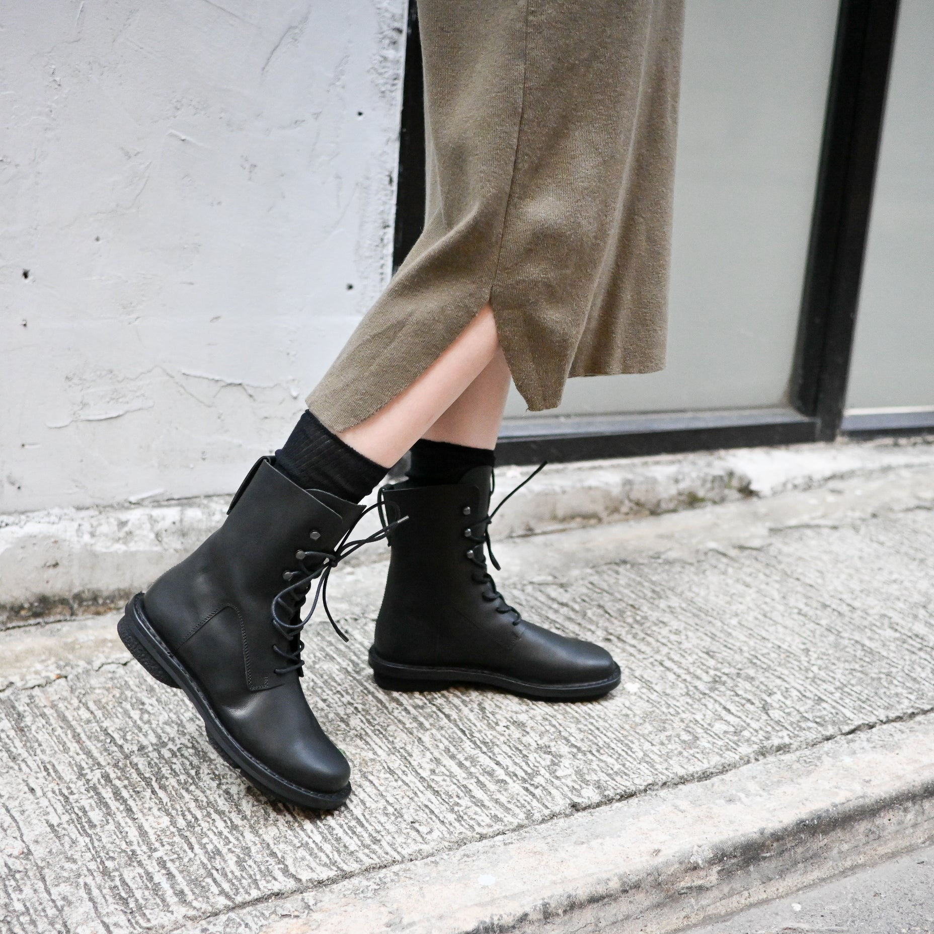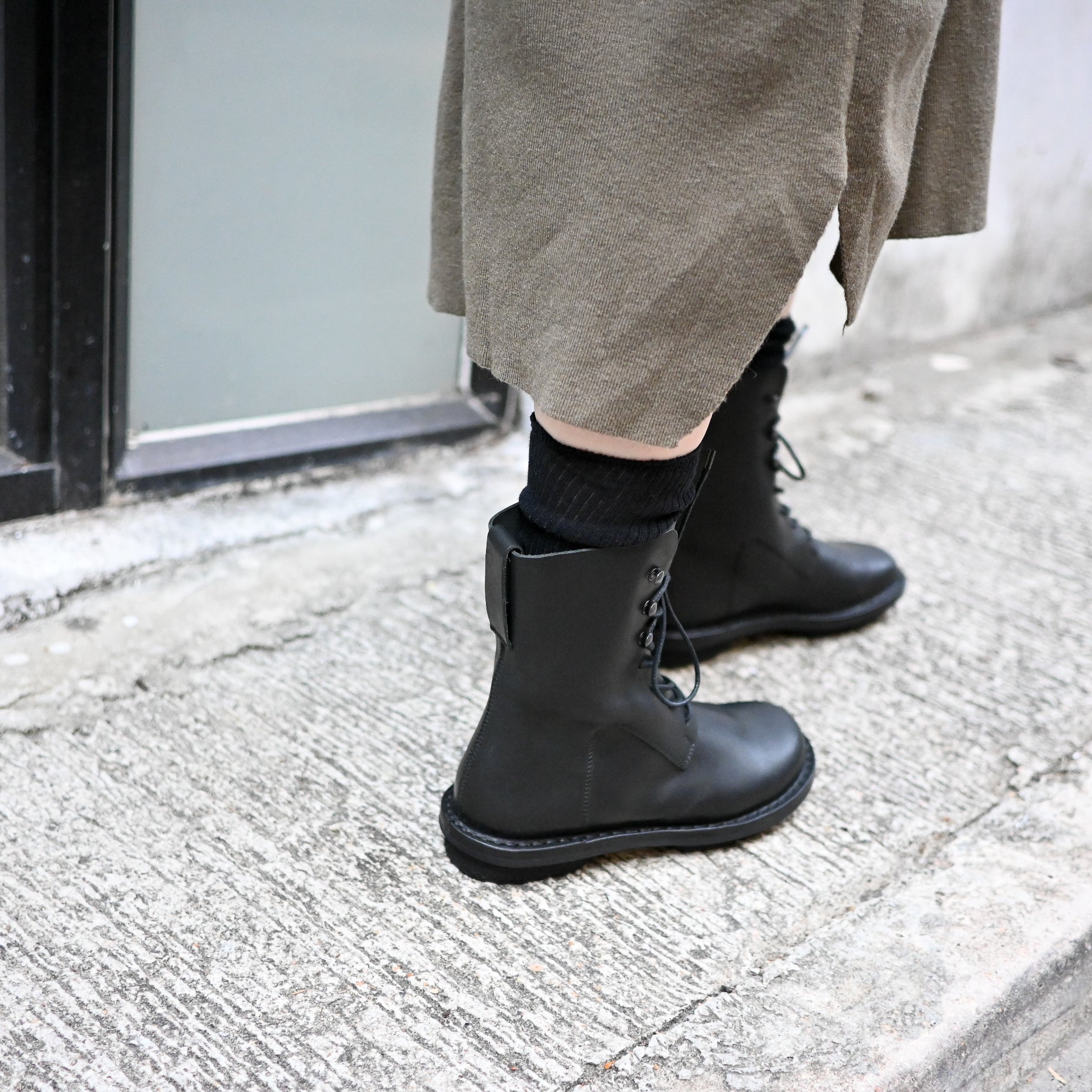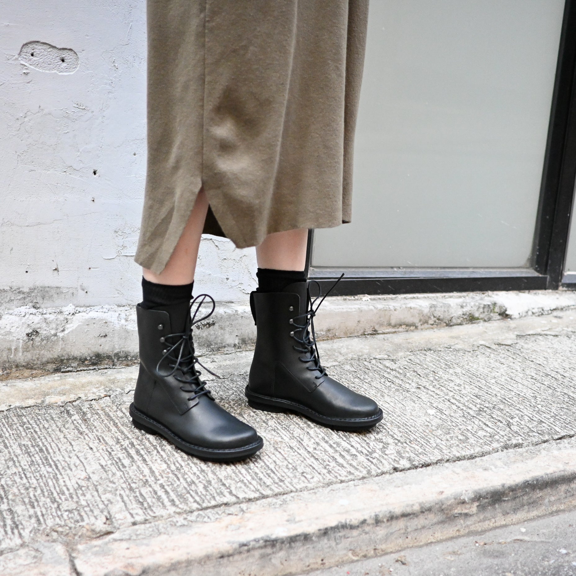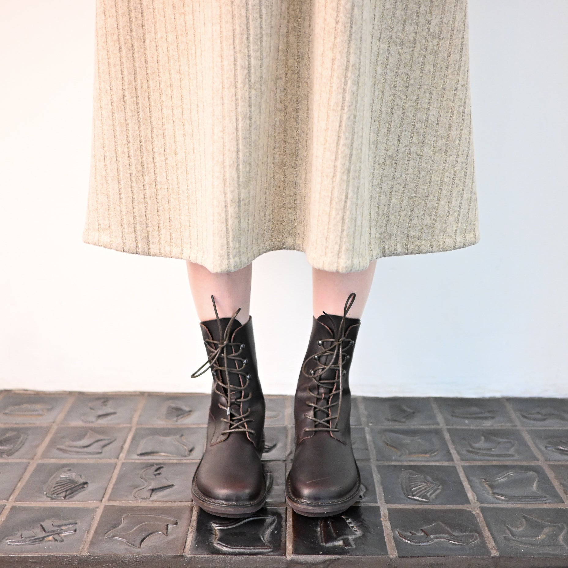 Bert is a mid-cut lace up boot designed with timeless lines and a supportive build. The smooth shaft rises above the ankle and fastens with a mix of traditional eyelets and metal speed hooks, offering both security and ease. The understated panel construction and gently rounded toe give the silhouette a clean, everyday appeal.
