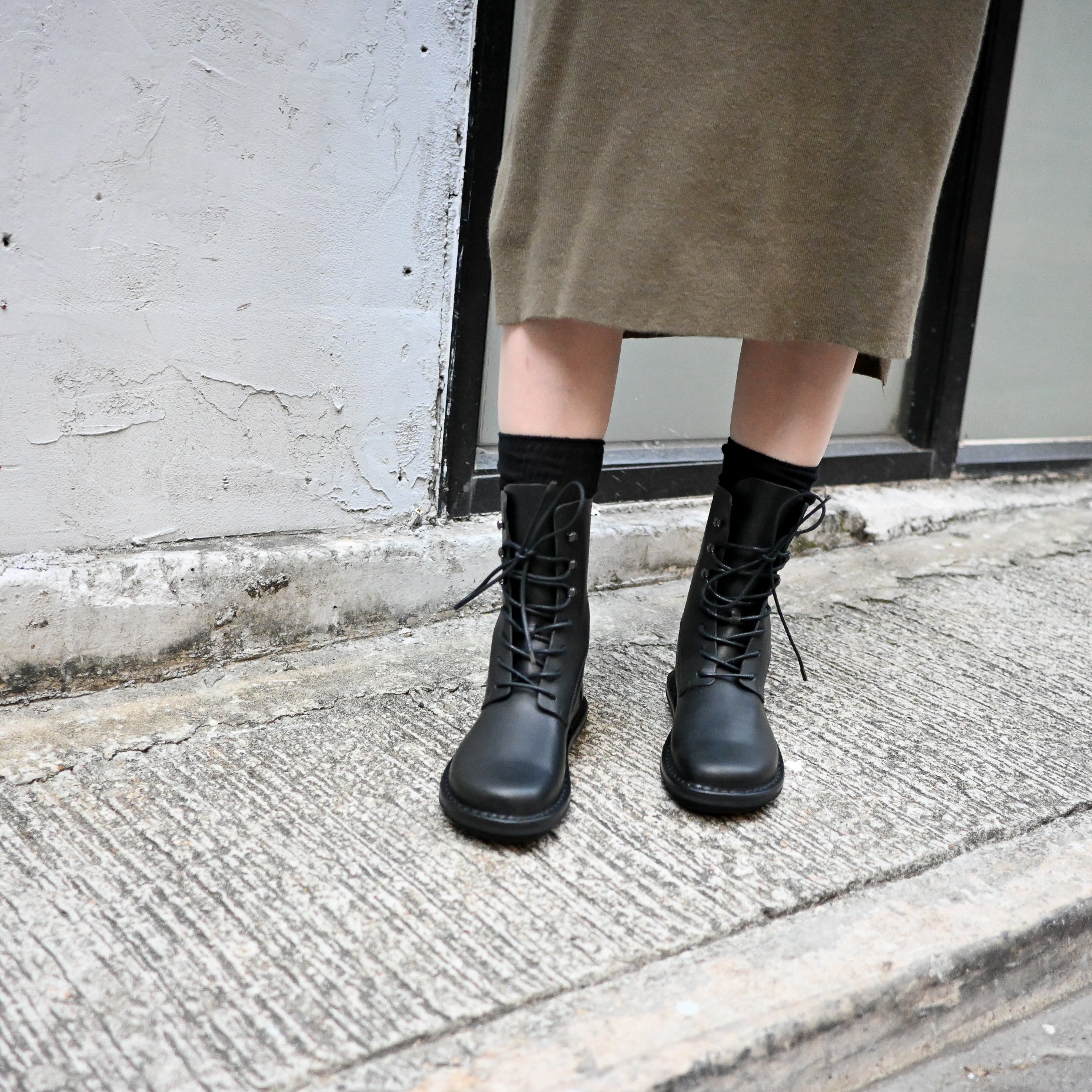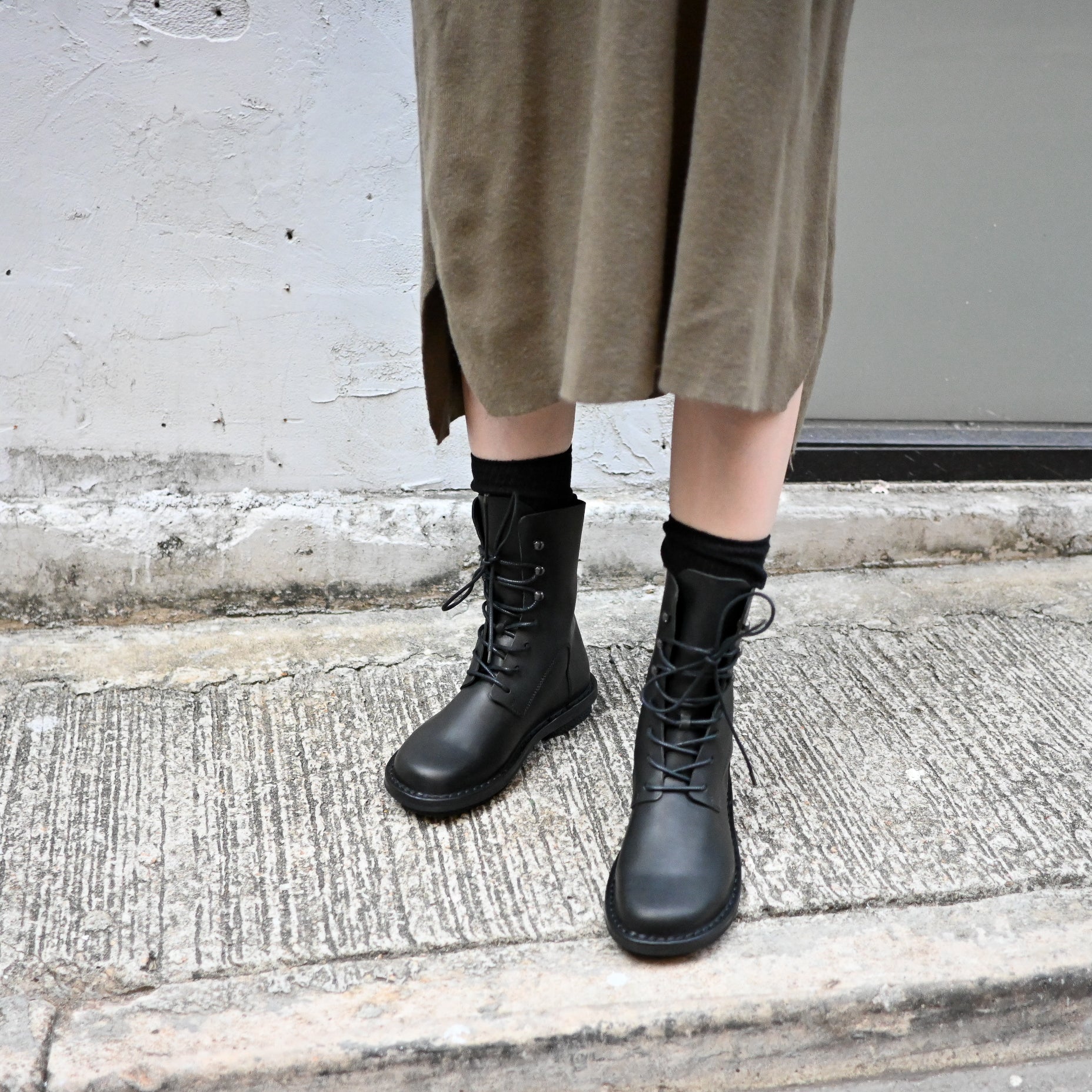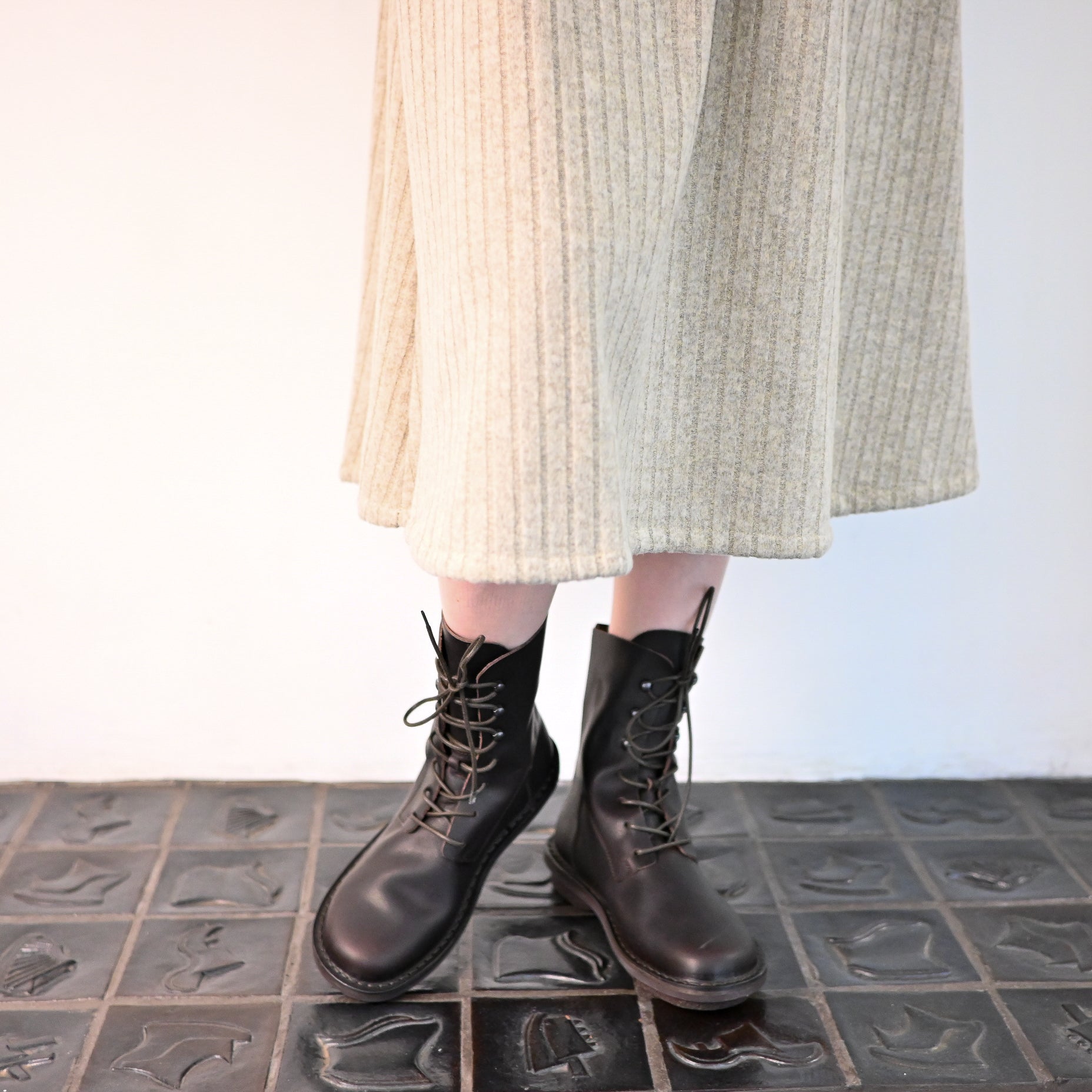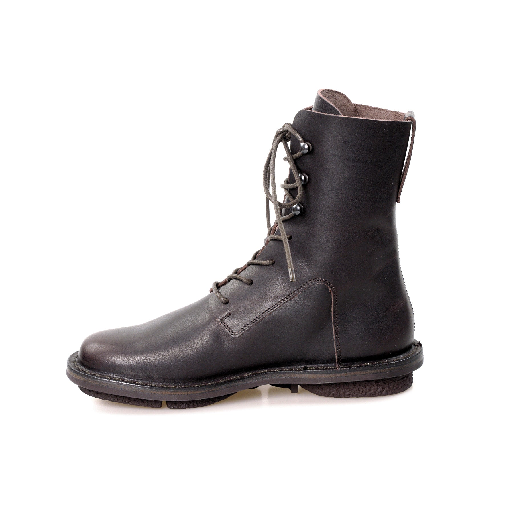 Bert is a mid-cut lace up boot designed with timeless lines and a supportive build. The smooth shaft rises above the ankle and fastens with a mix of traditional eyelets and metal speed hooks, offering both security and ease. The understated panel construction and gently rounded toe give the silhouette a clean, everyday appeal.