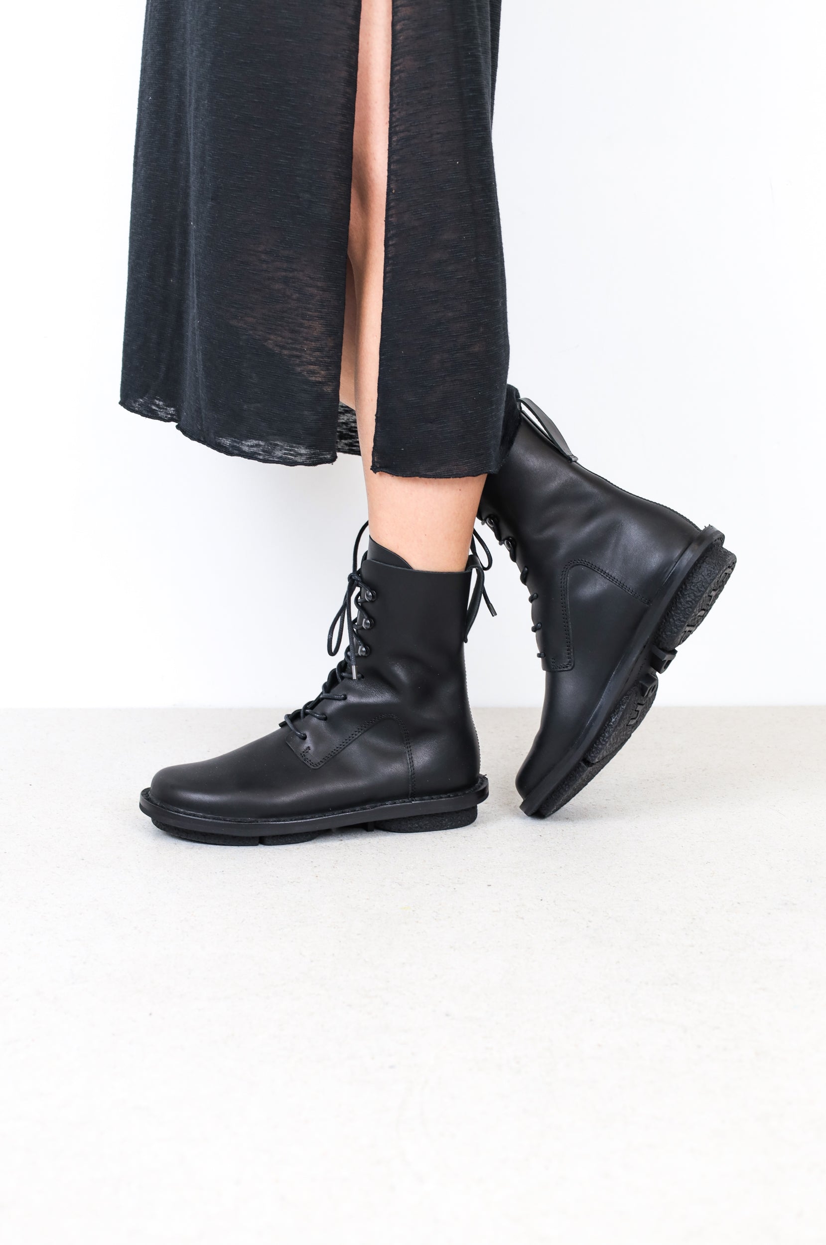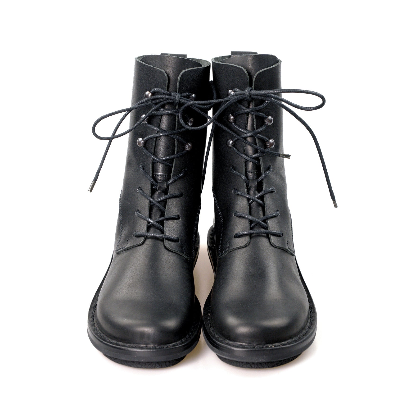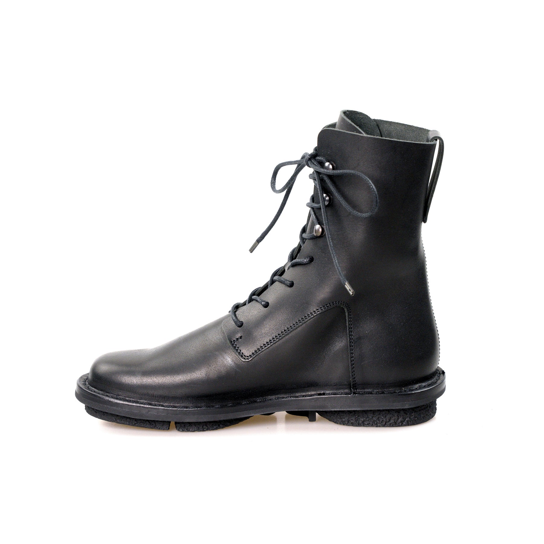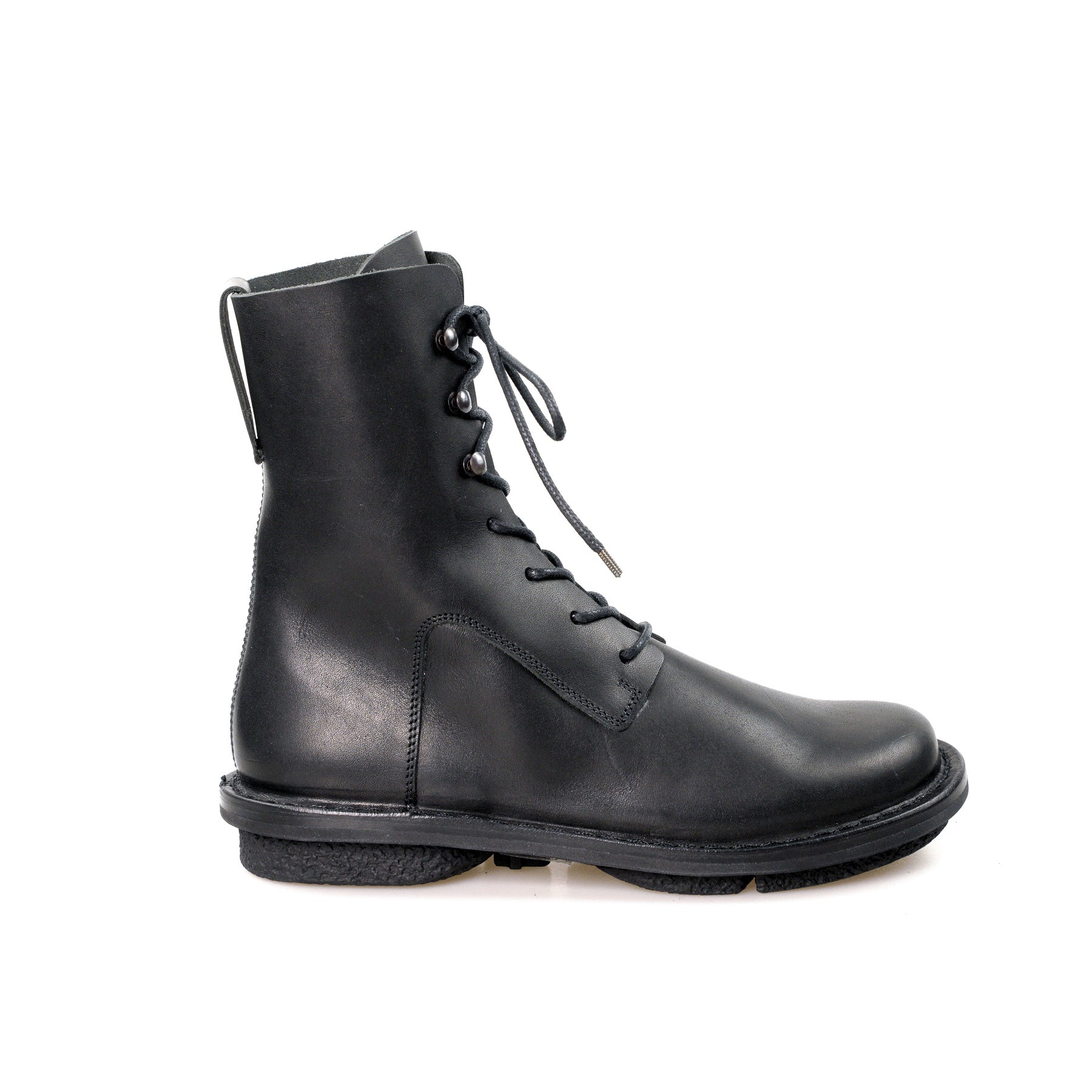 Bert is a mid-cut lace up boot designed with timeless lines and a supportive build. The smooth shaft rises above the ankle and fastens with a mix of traditional eyelets and metal speed hooks, offering both security and ease. The understated panel construction and gently rounded toe give the silhouette a clean, everyday appeal.