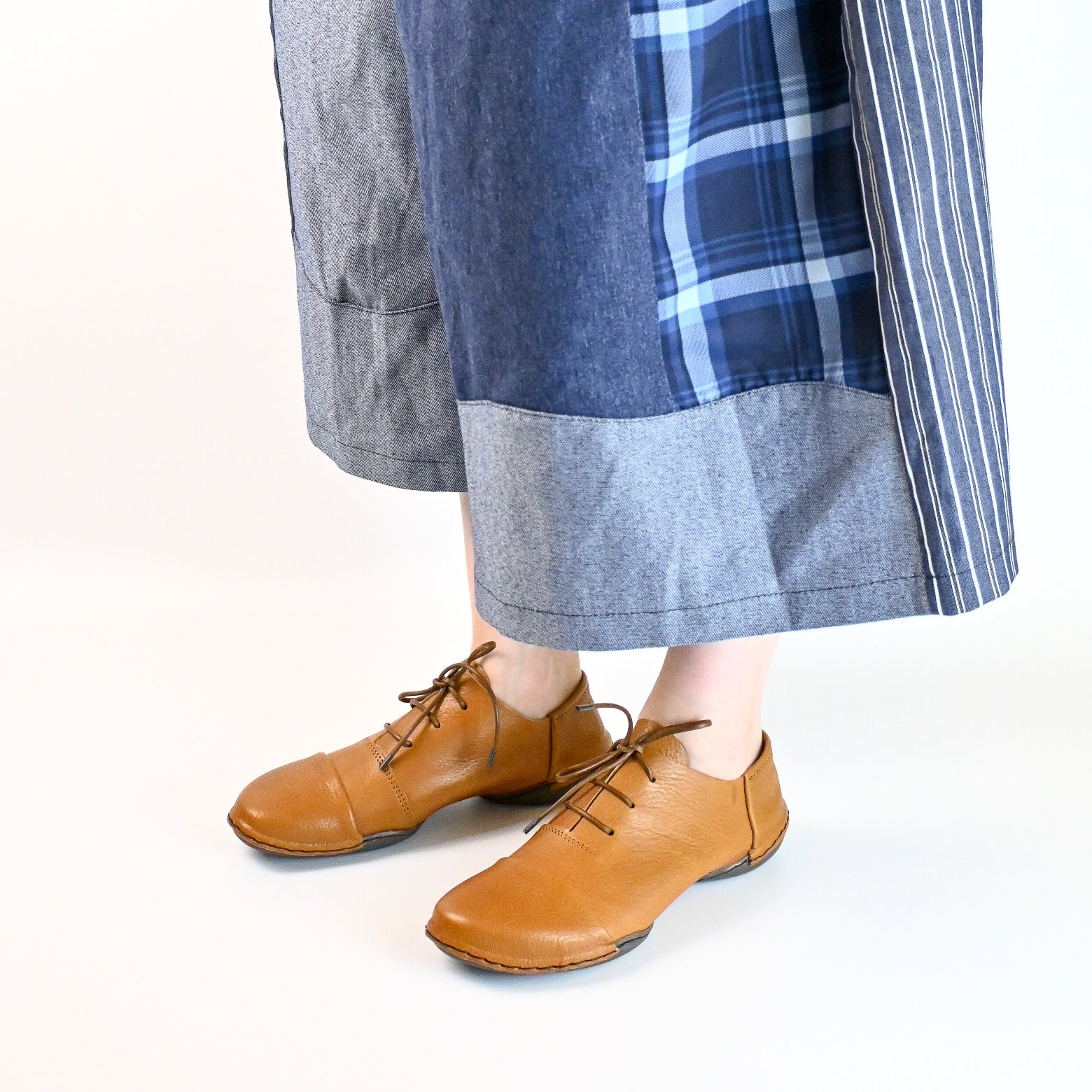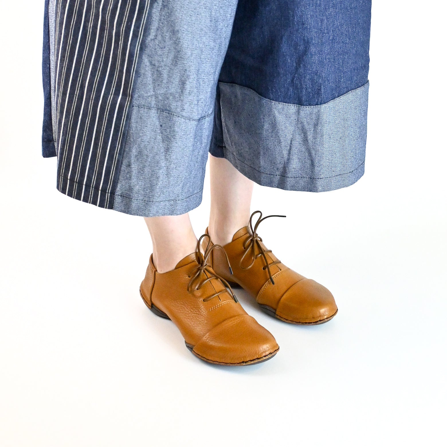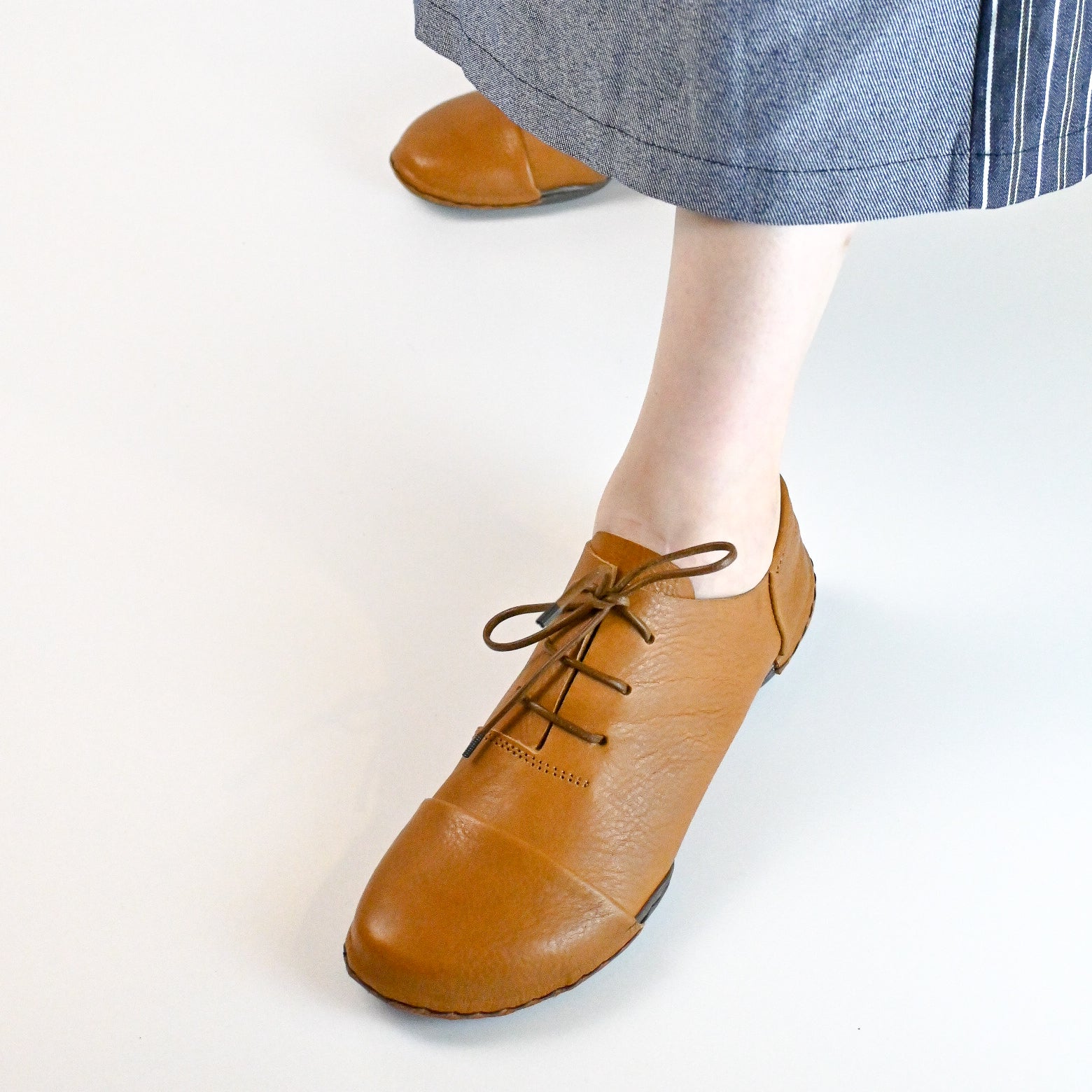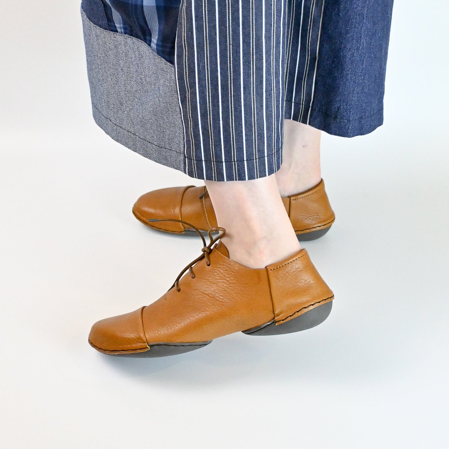 Cello is a minimal lace up shoe with a sculptural edge and understated charm. Its asymmetrical lines and stitched detailing highlight a handcrafted aesthetic, while the open edge is neatly attached to the sole seam for a subtle design twist. The soft vegetable tanned leather gently hugs the foot and adapts over time for a personalized fit. Finished with the flexible sole, it offers lightweight comfort and all day ease. A quietly distinctive style that balances classic function with modern form.