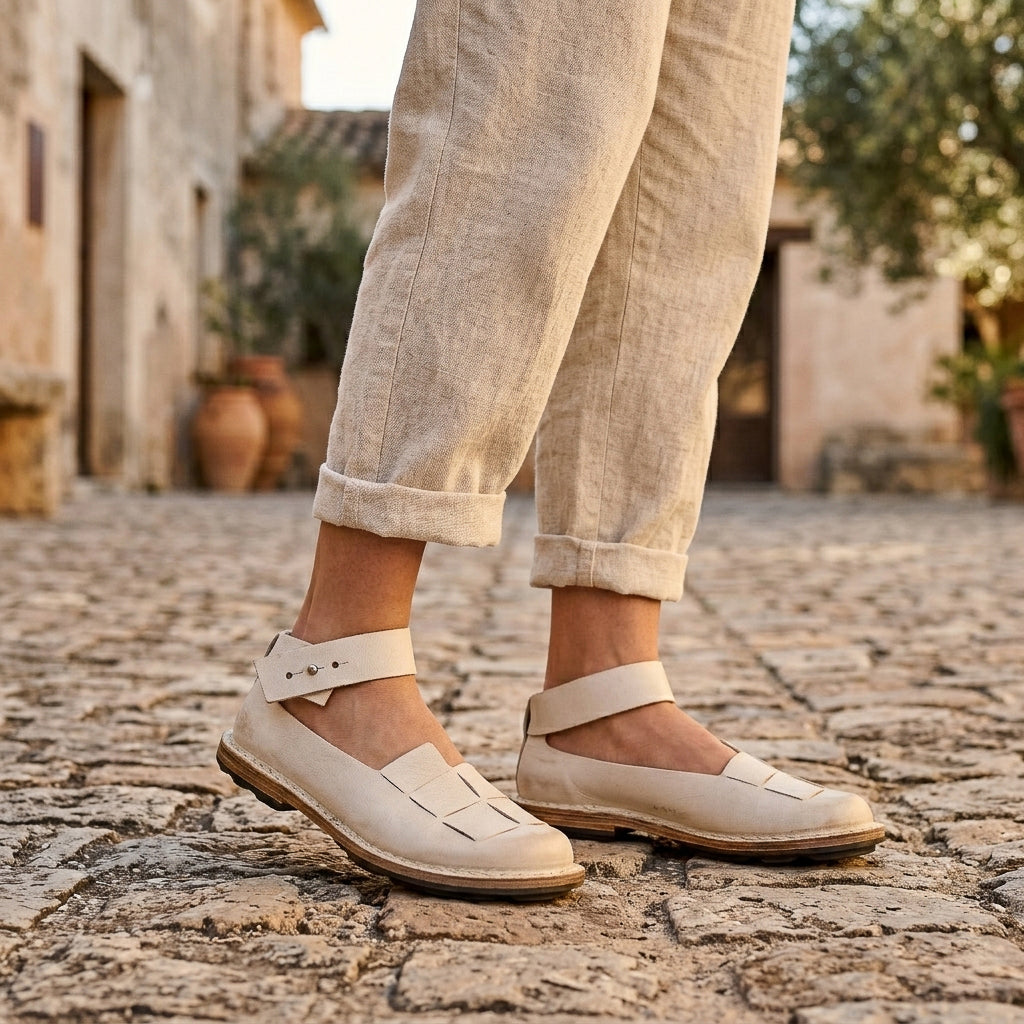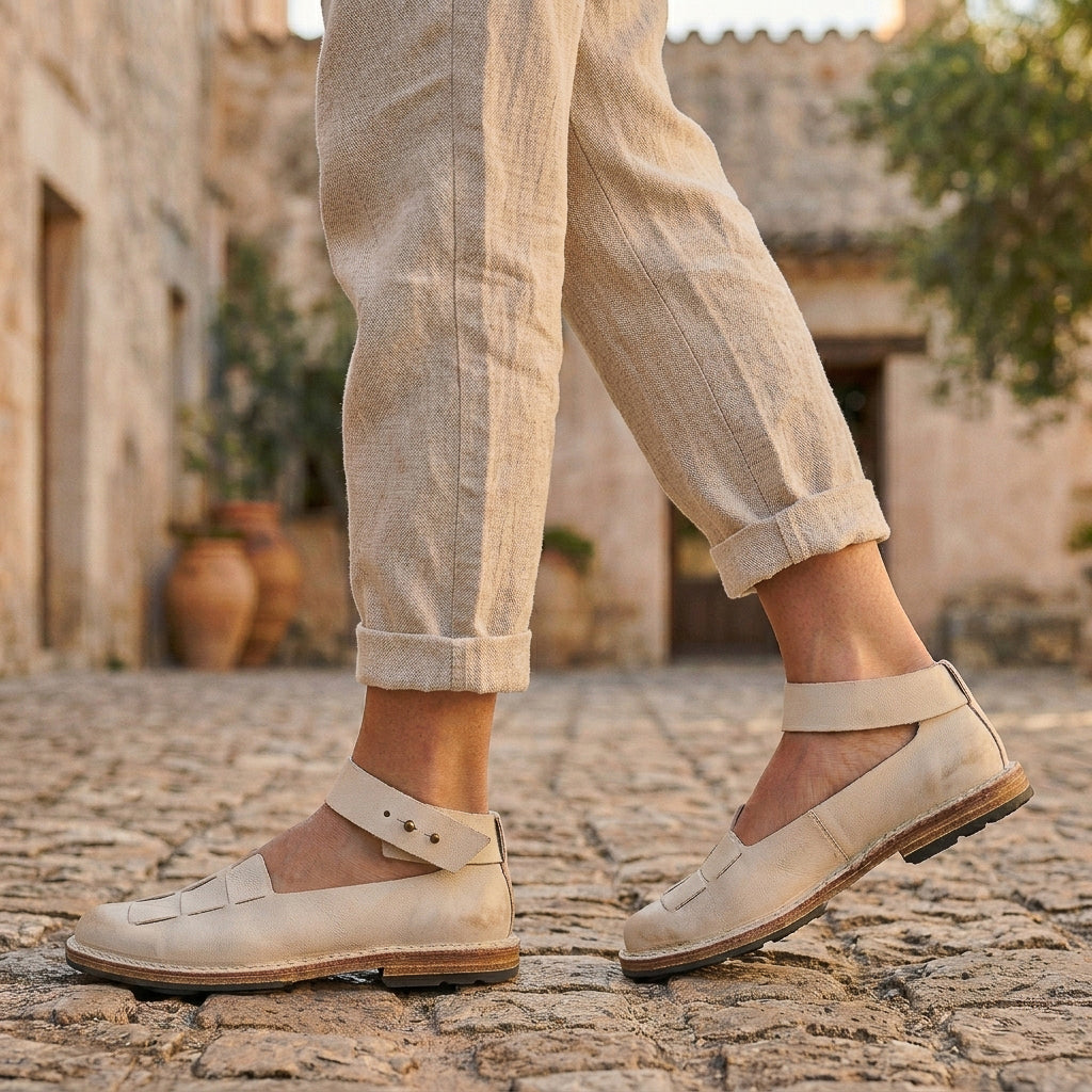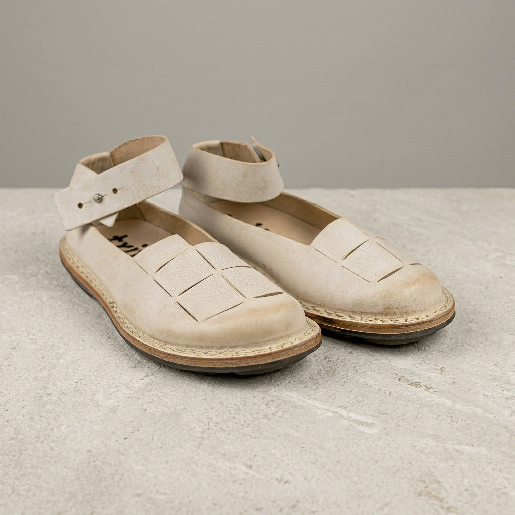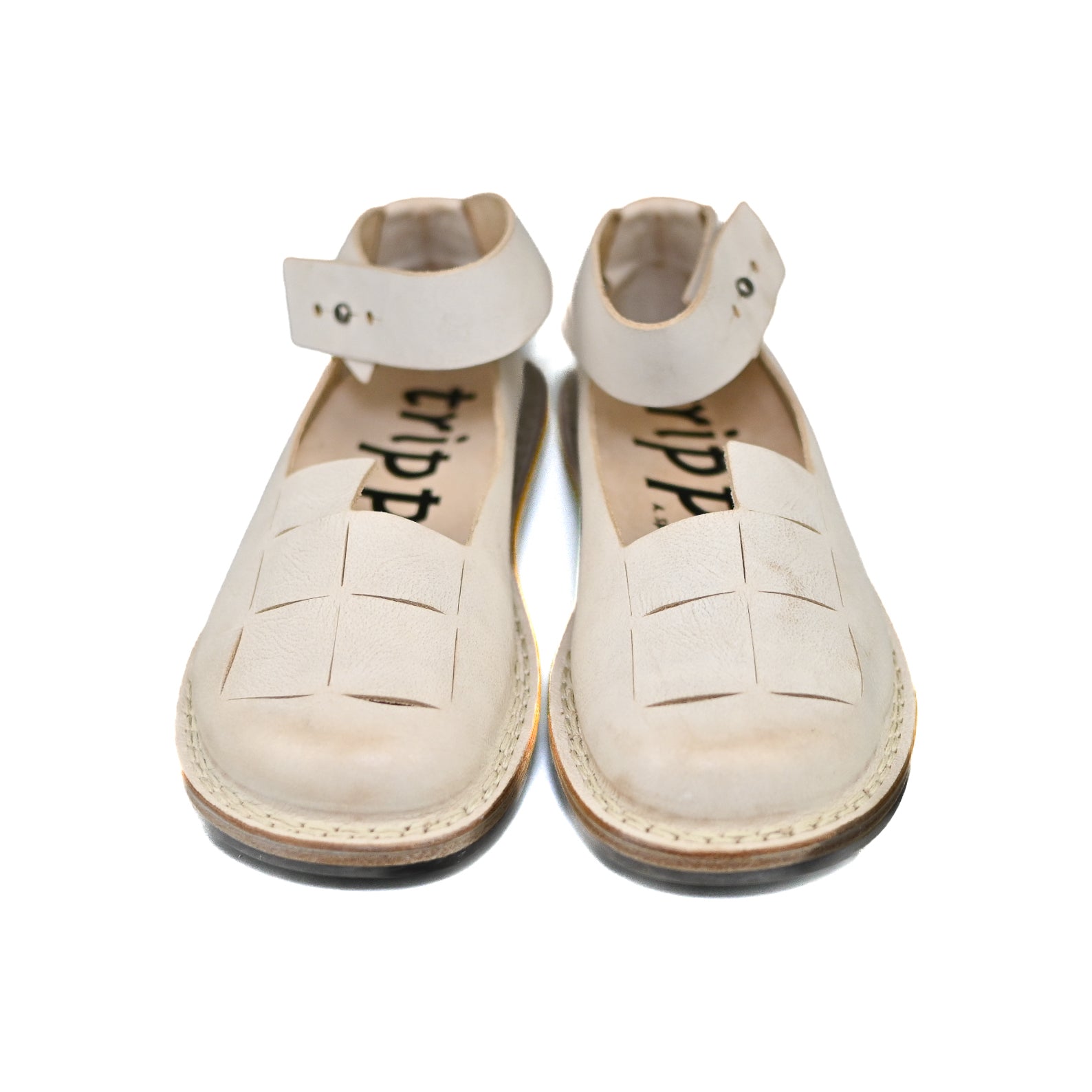 A playful yet structured design, Chip is defined by its clean silhouette and distinctive cut-out detailing across the toe. The geometric perforations add lightness and visual rhythm, while the rounded shape keeps the overall look soft and approachable.