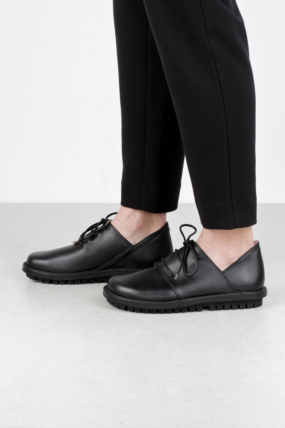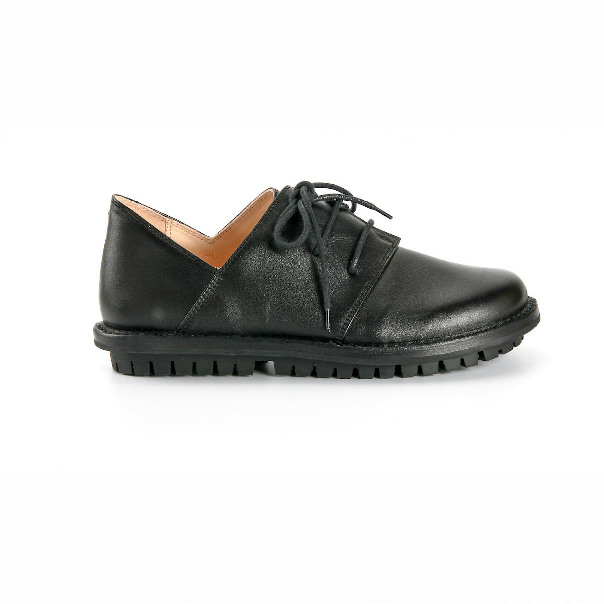 Haferl is a contemporary take on the classic derby shoe, featuring clean lines, a sleek overlapping construction, and a sharp, structured silhouette.