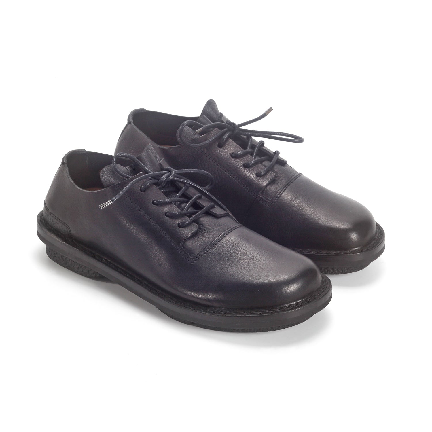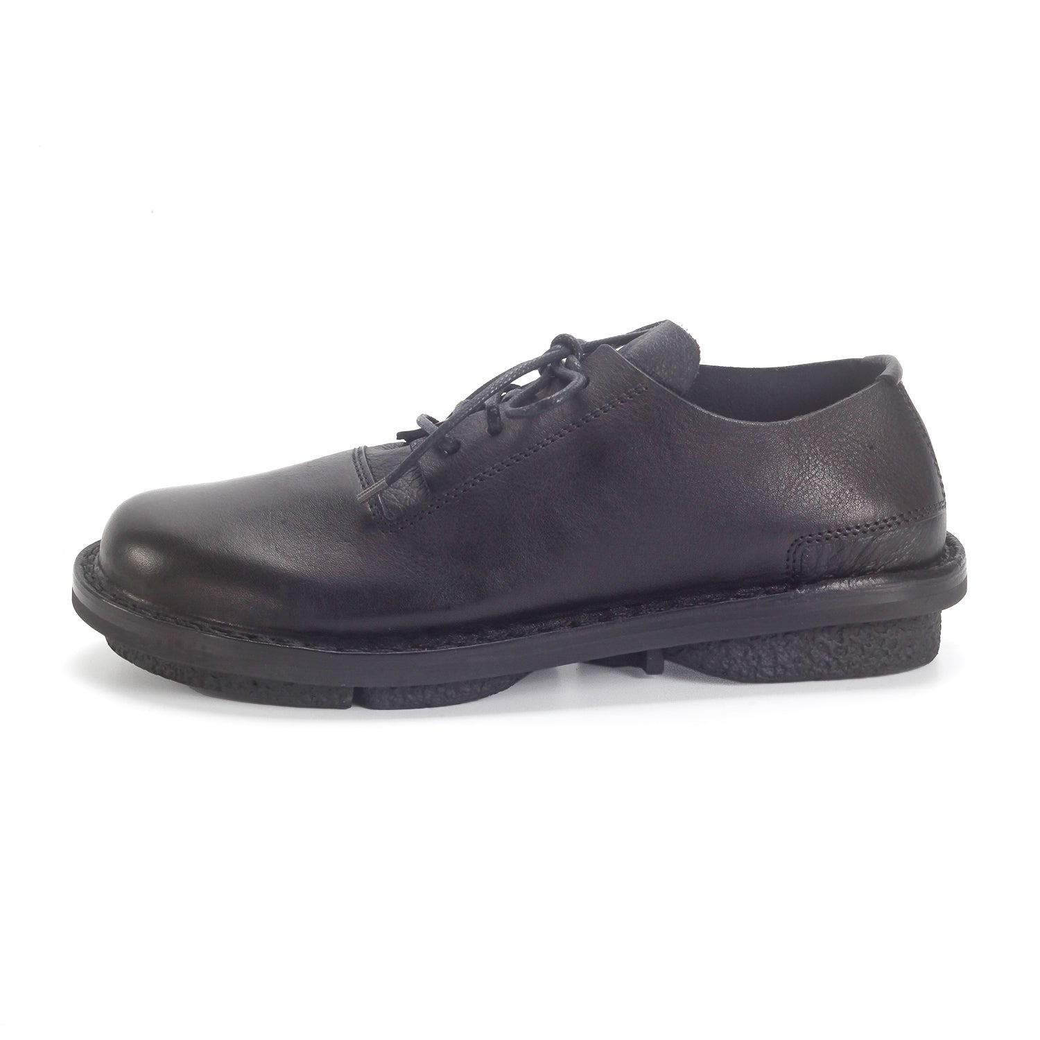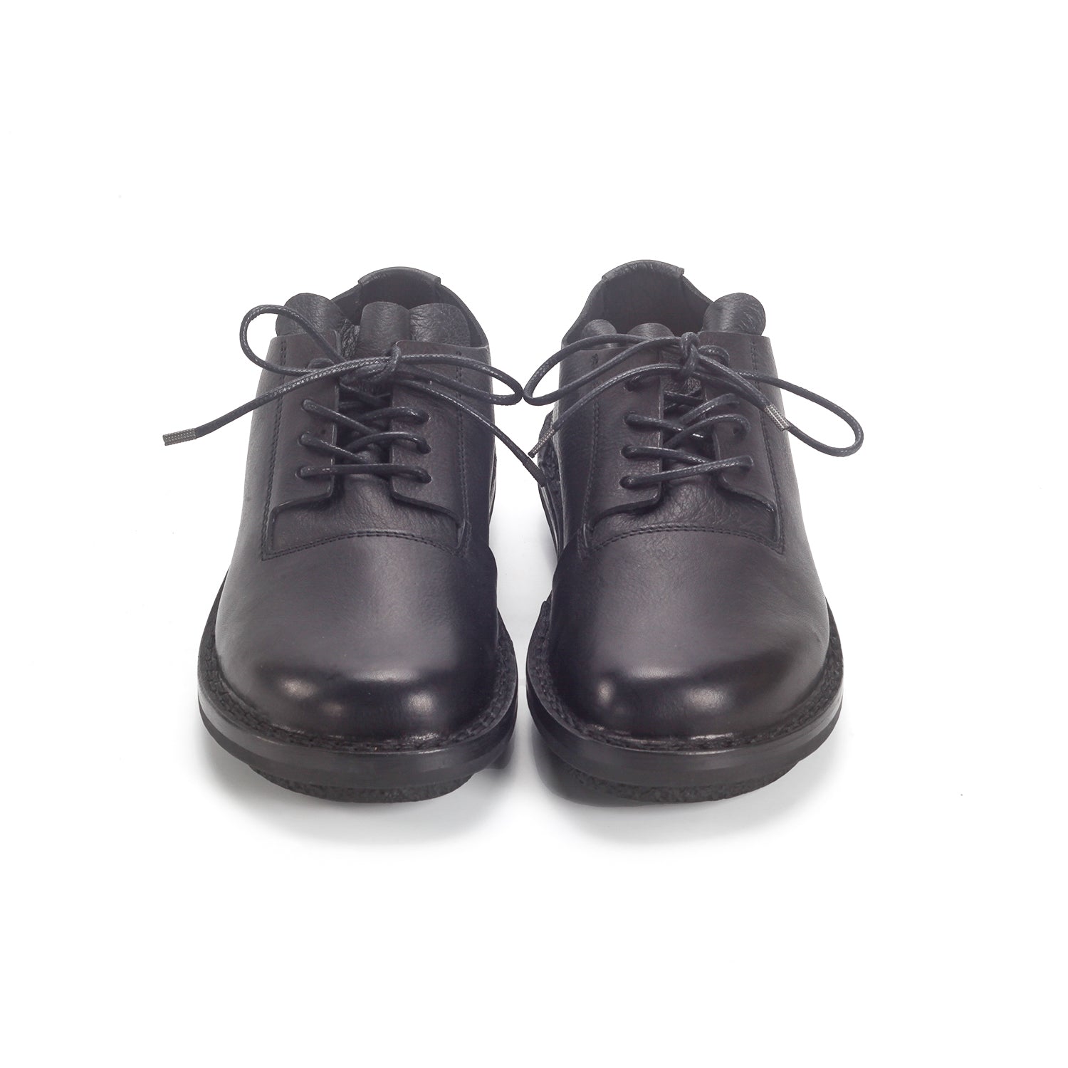 The Insight shoe is a refined low-cut design that incorporates classic geometric elements with a modern touch. Featuring two T-shaped cut-outs made from soft deerskin, it offers a unique blend of structure and flexibility. The lace-up closure ensures a secure fit, while the rounded toe and padded tongue enhance comfort. A rugged sole provides excellent support, making this shoe a stylish yet practical choice for everyday wear.