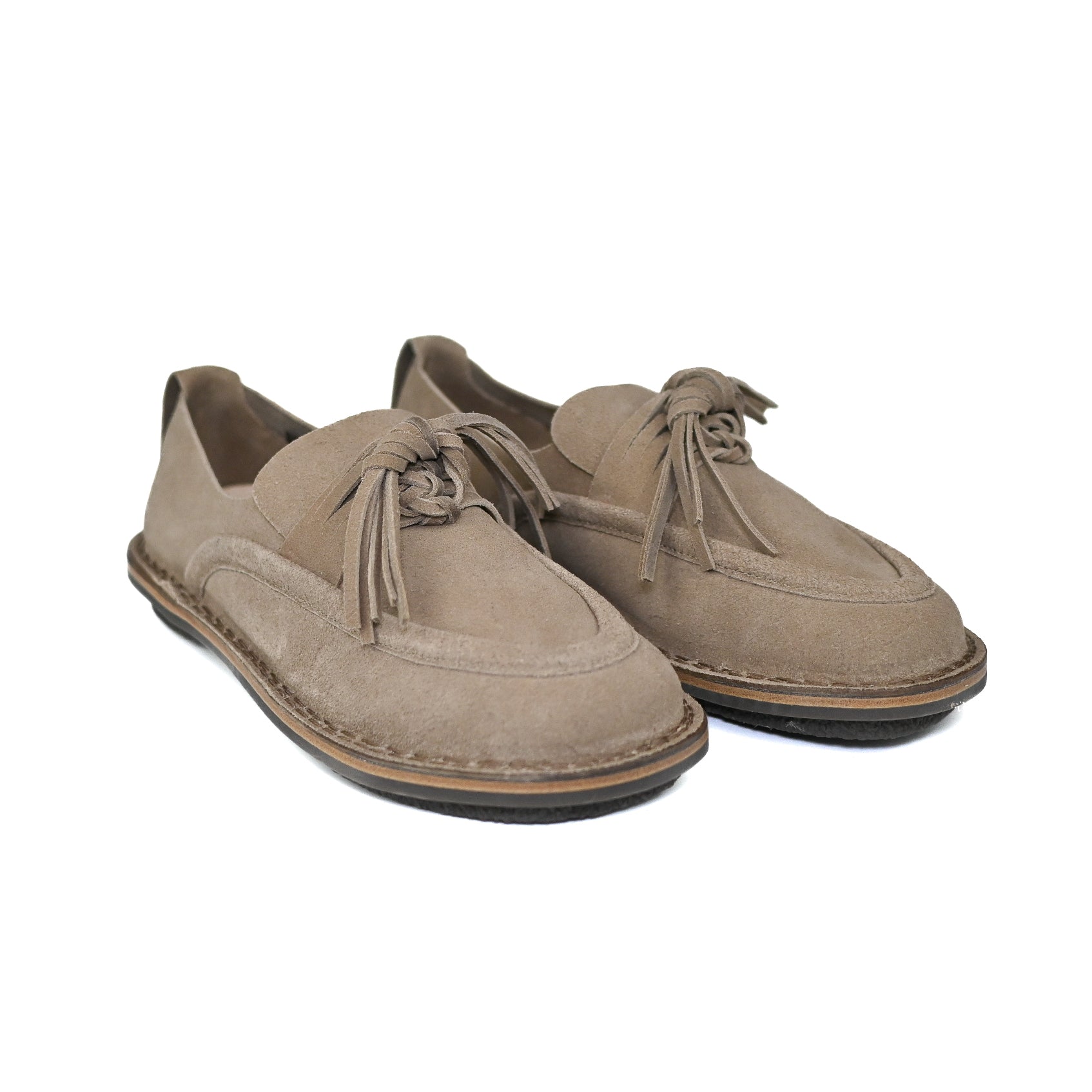 A soft, sculptural design with a relaxed character, Node is shaped by its gently gathered upper that forms natural folds across the foot. The rounded silhouette and minimal construction give it an organic, understated presence, while subtle detailing adds depth without disrupting the clean form.
