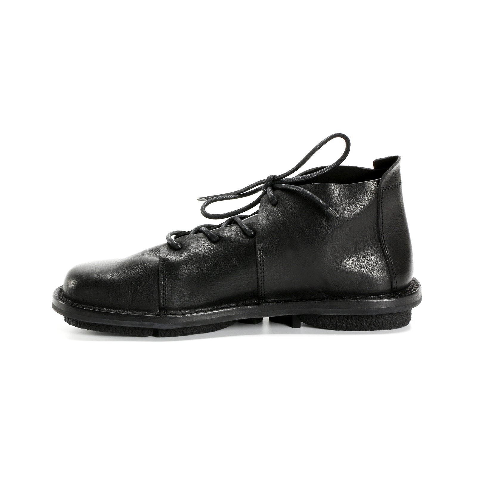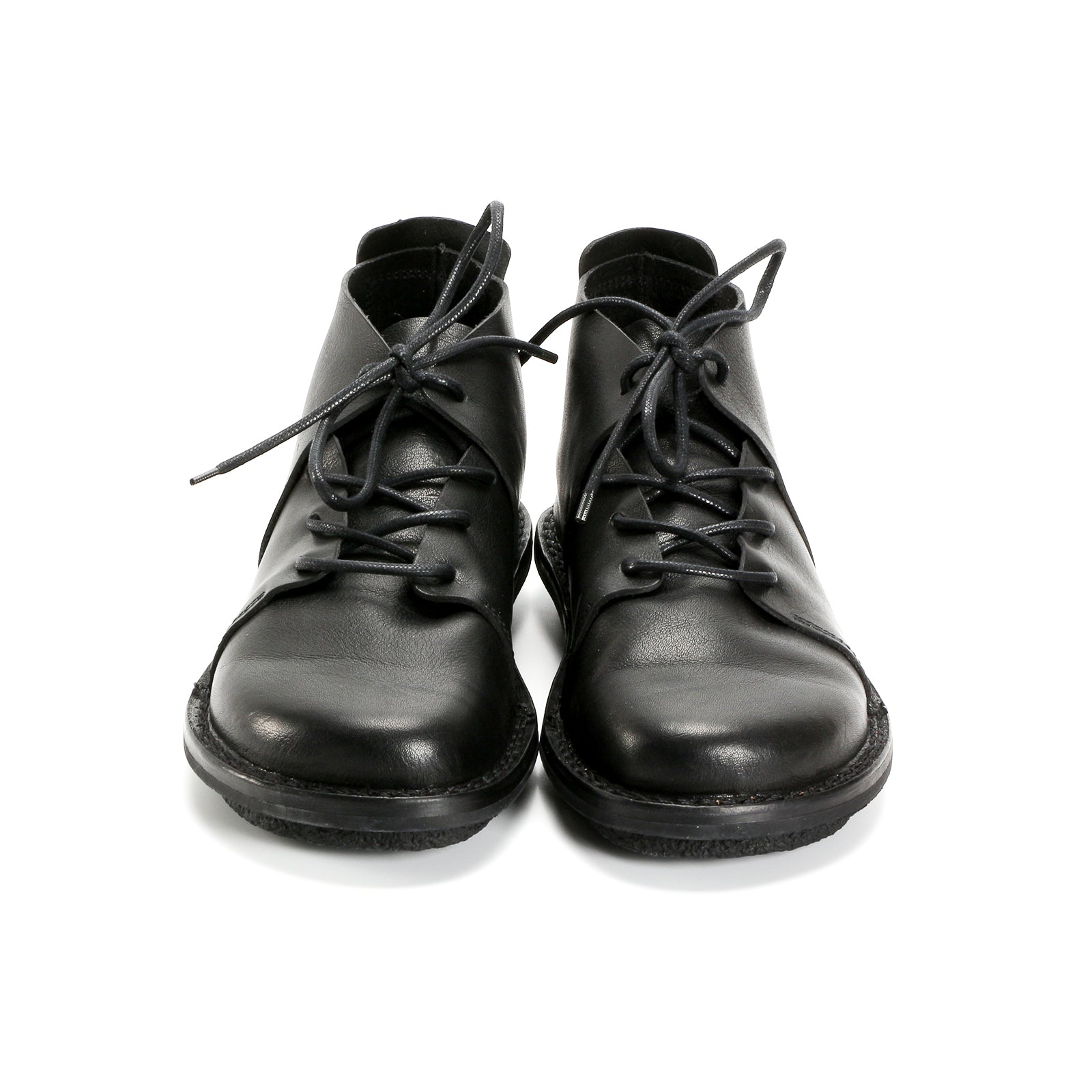 Nomad_low is a lace-up ankle boot inspired by the layered garments of Arctic nomadic cultures. Its raw silhouette and purposeful construction echo the utilitarian beauty of traditional cold-climate wear, reinterpreted through Trippen’s architectural lens.