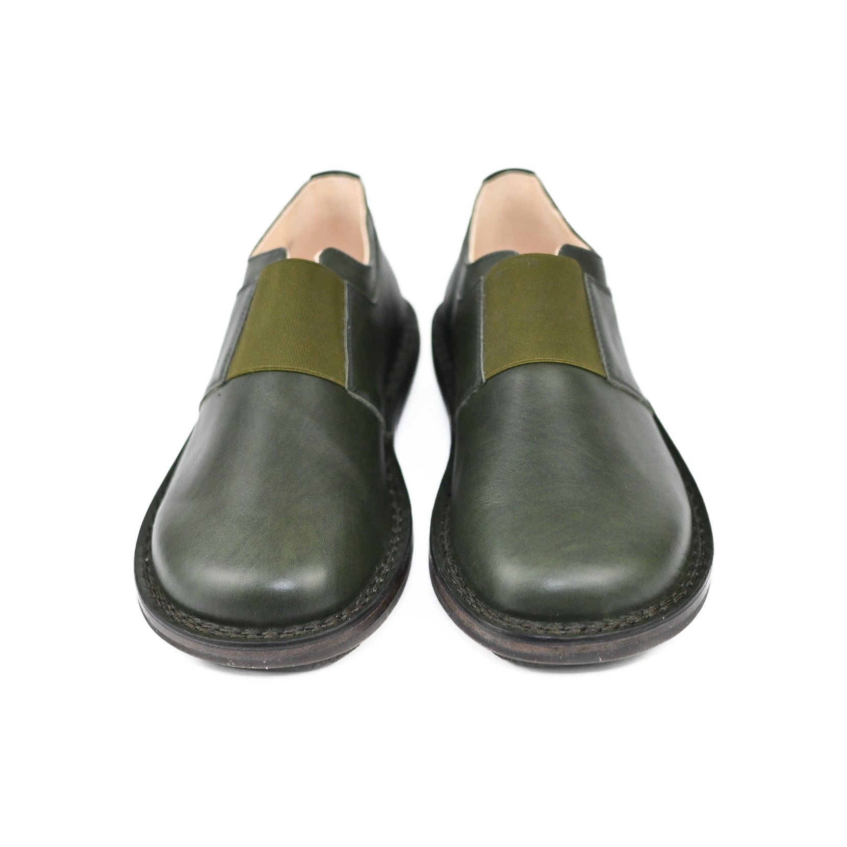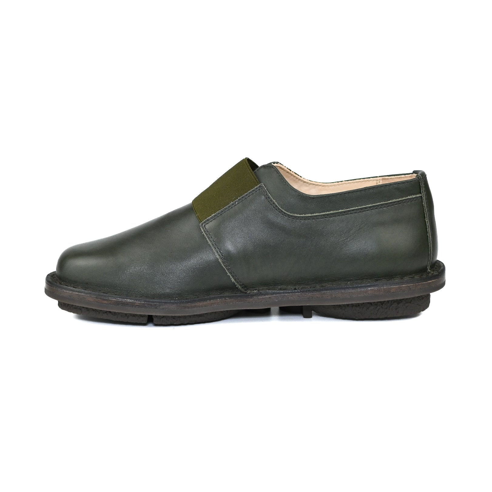 A clean slip-on shoe with a relaxed and modern character, Nonno is defined by its smooth upper and softly rounded silhouette. The minimal design is complemented by a wide elasticated band across the instep, offering both a secure fit and a subtle visual contrast.