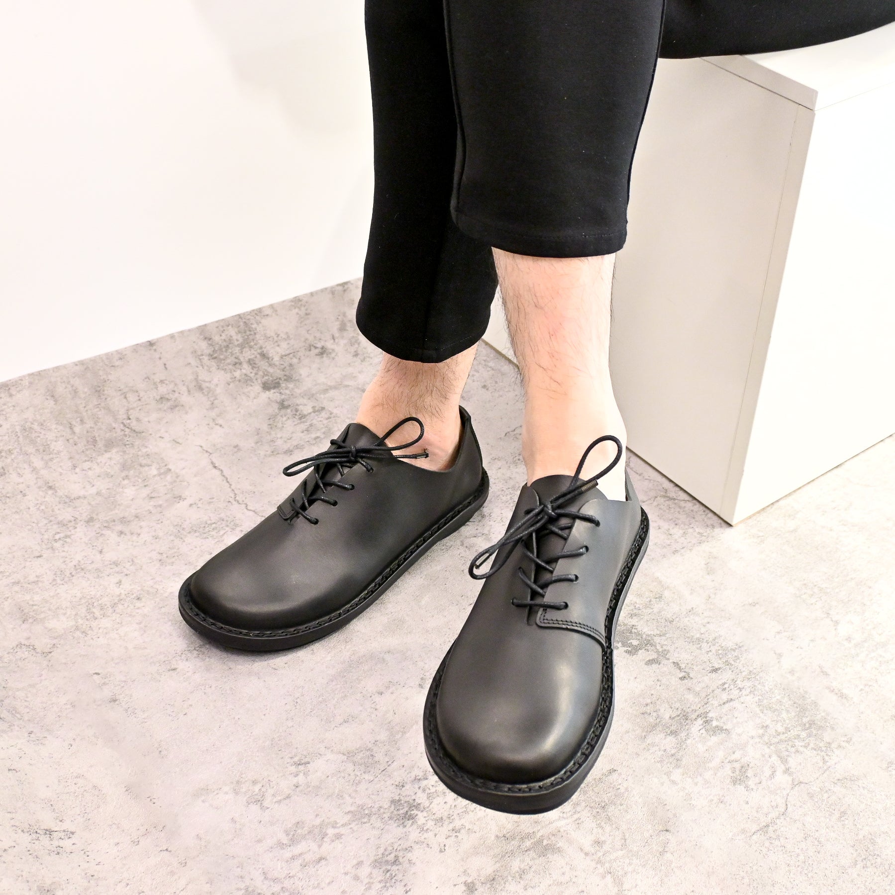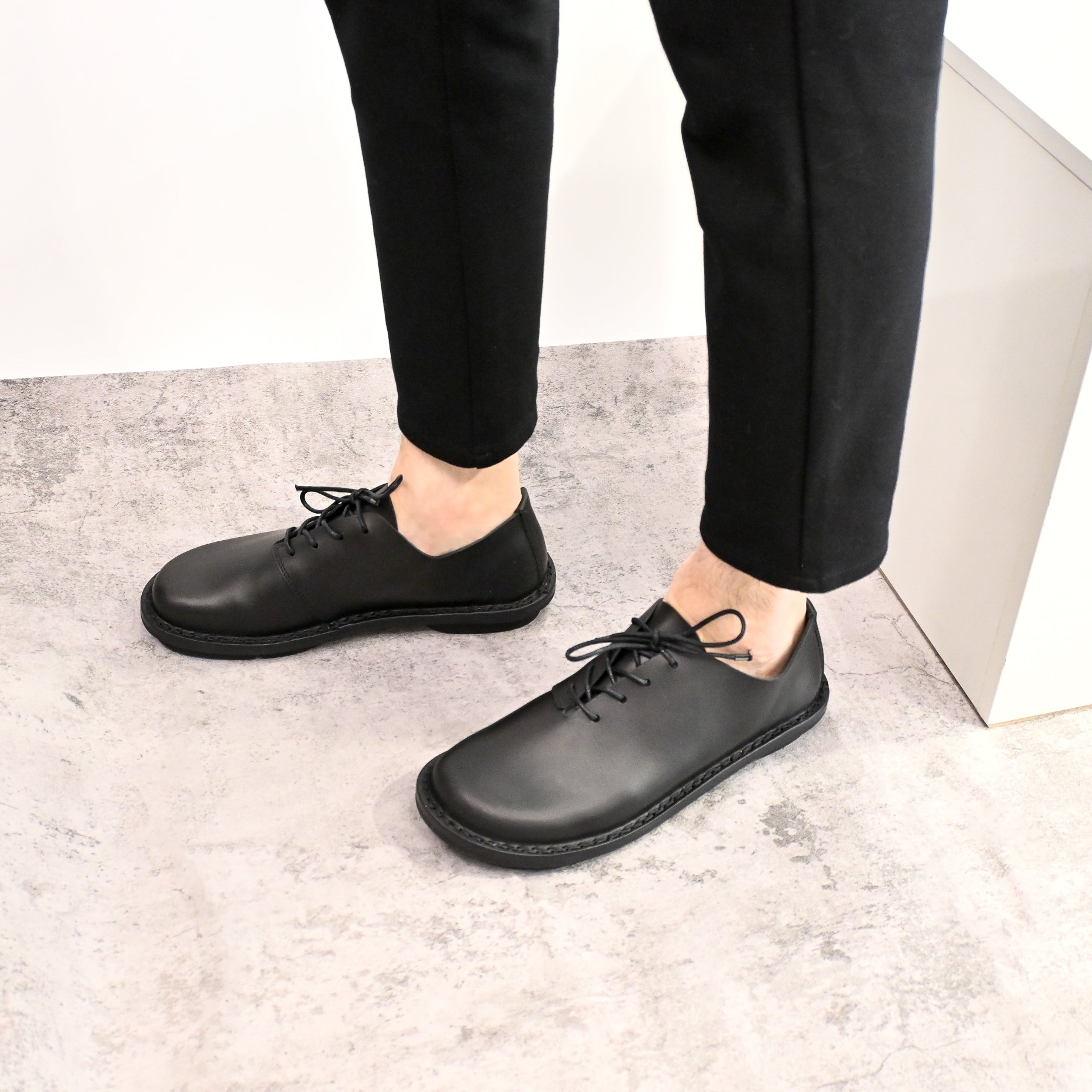 The Page style is a simple yet refined men’s lace-up shoe, featuring a clean, minimalist design on a closed sole. Available in classic black or with striped embossed leather, this versatile shoe blends timeless elegance with modern functionality. Its streamlined silhouette makes it a perfect choice for those who appreciate understated sophisticationin everyday footwear.