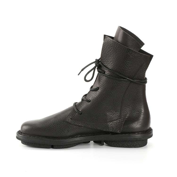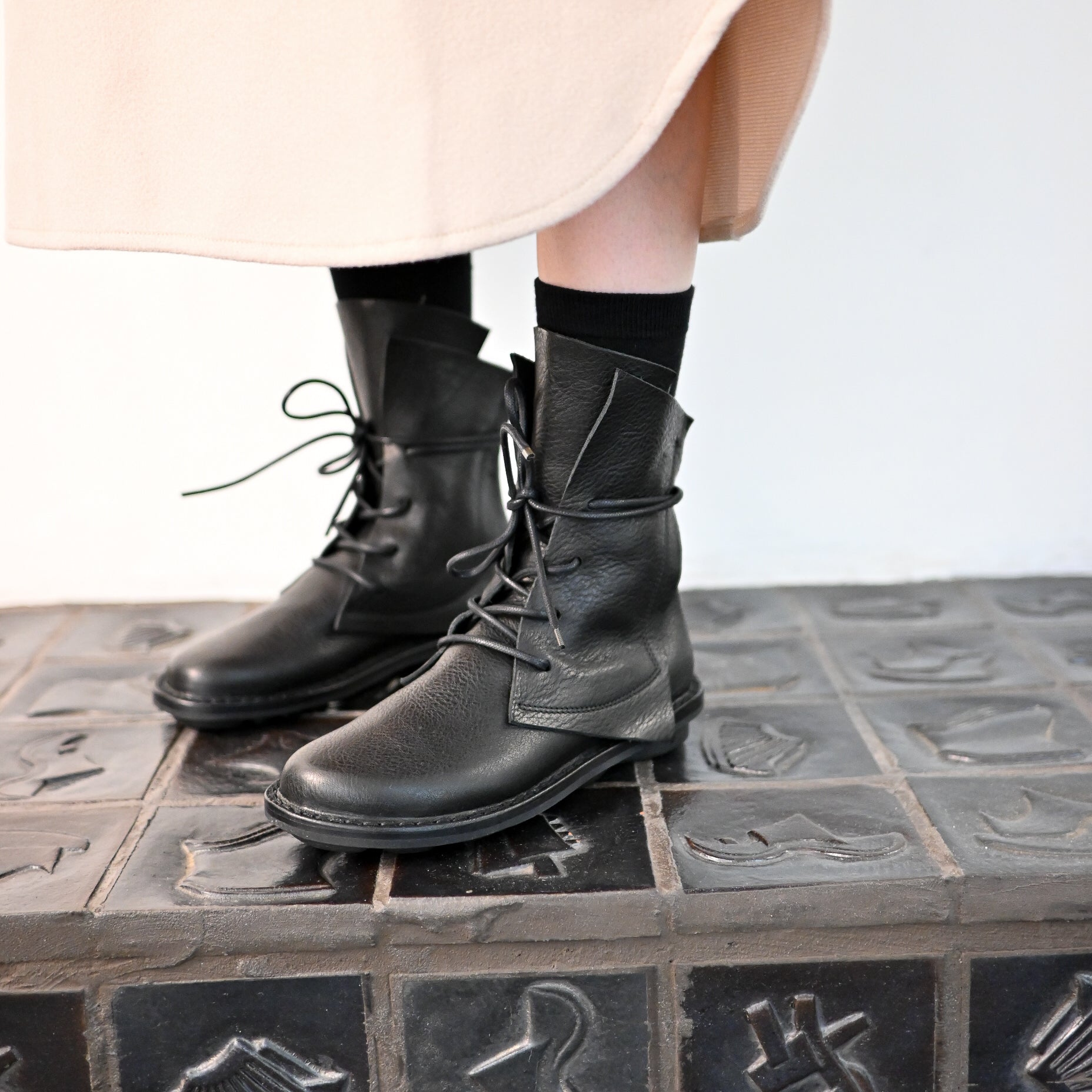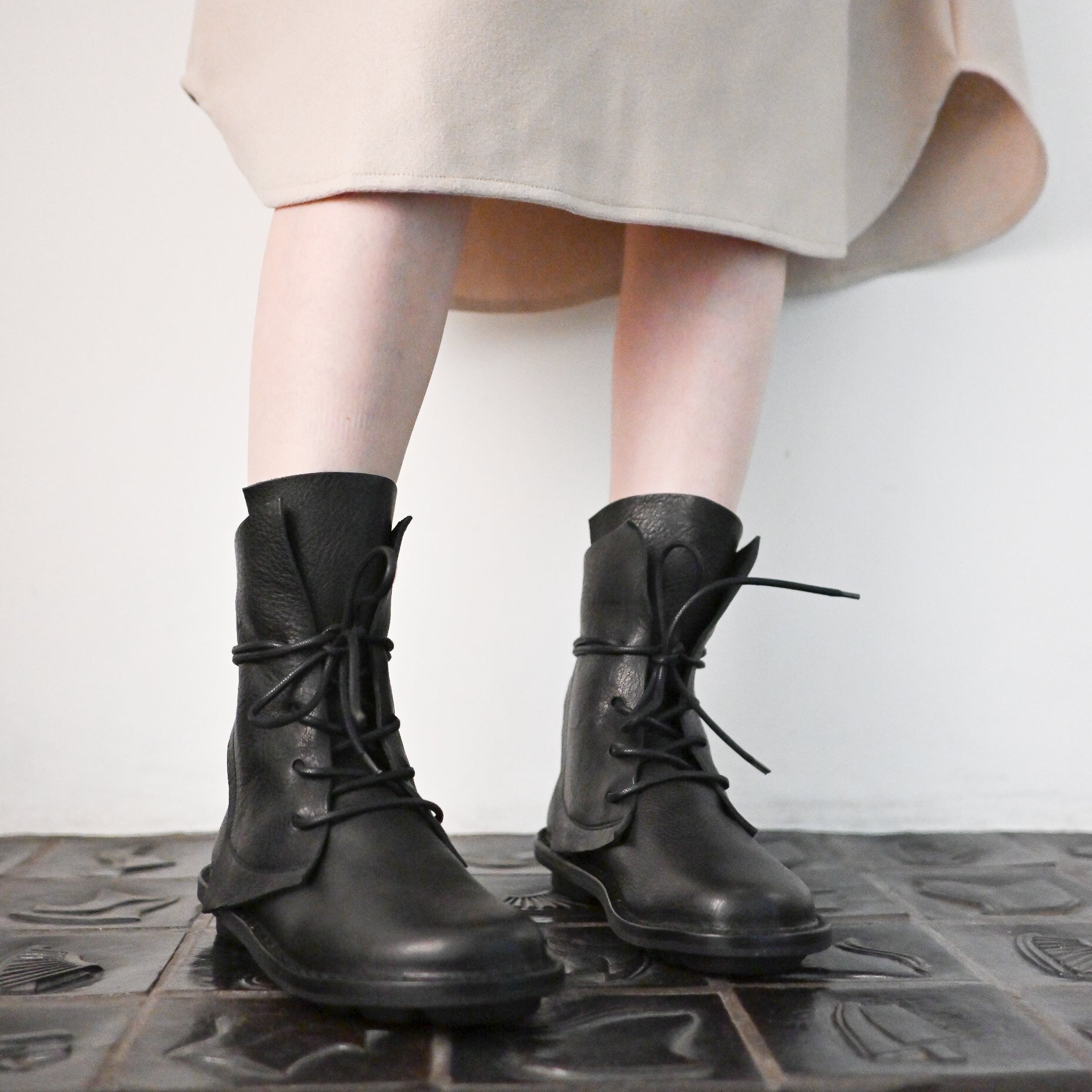The Rectangle style is a bold, avant-garde lace-up boot featuring an asymmetrical layered flap that forms a distinctive rectangular shape, creating a unique and striking silhouette. The geometric design adds an artistic, architectural element, while the extended lacing system ensures a secure and adjustable fit. The low-profile yet sturdy sole provides both stability and comfort, making it an excellent choice for those who appreciate cutting-edge, fashion-forward footwear.