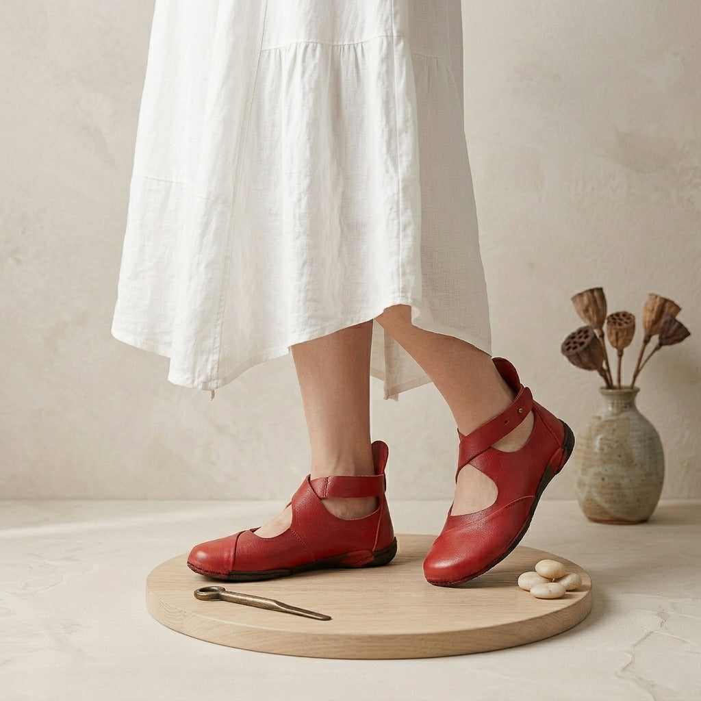 A sculptural and feminine design, Shell is defined by its smooth, rounded silhouette and softly cut-out upper. The curved opening across the foot creates a sense of lightness, while the wrap-around ankle strap adds both structure and a secure fit.