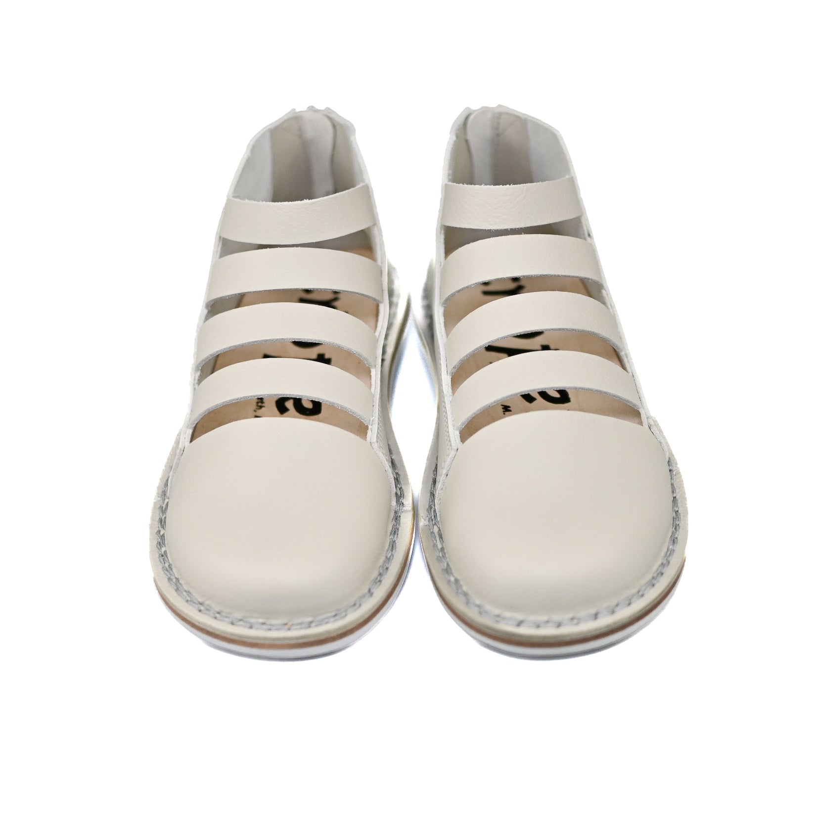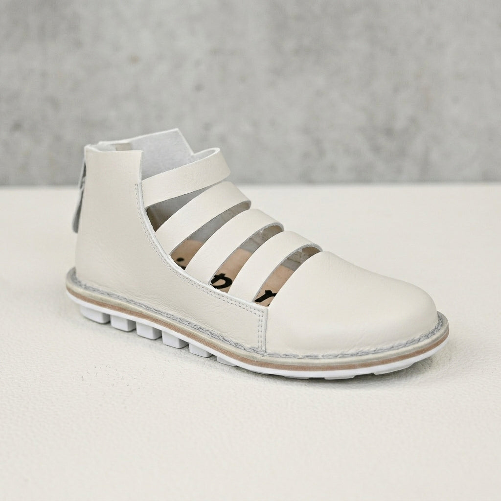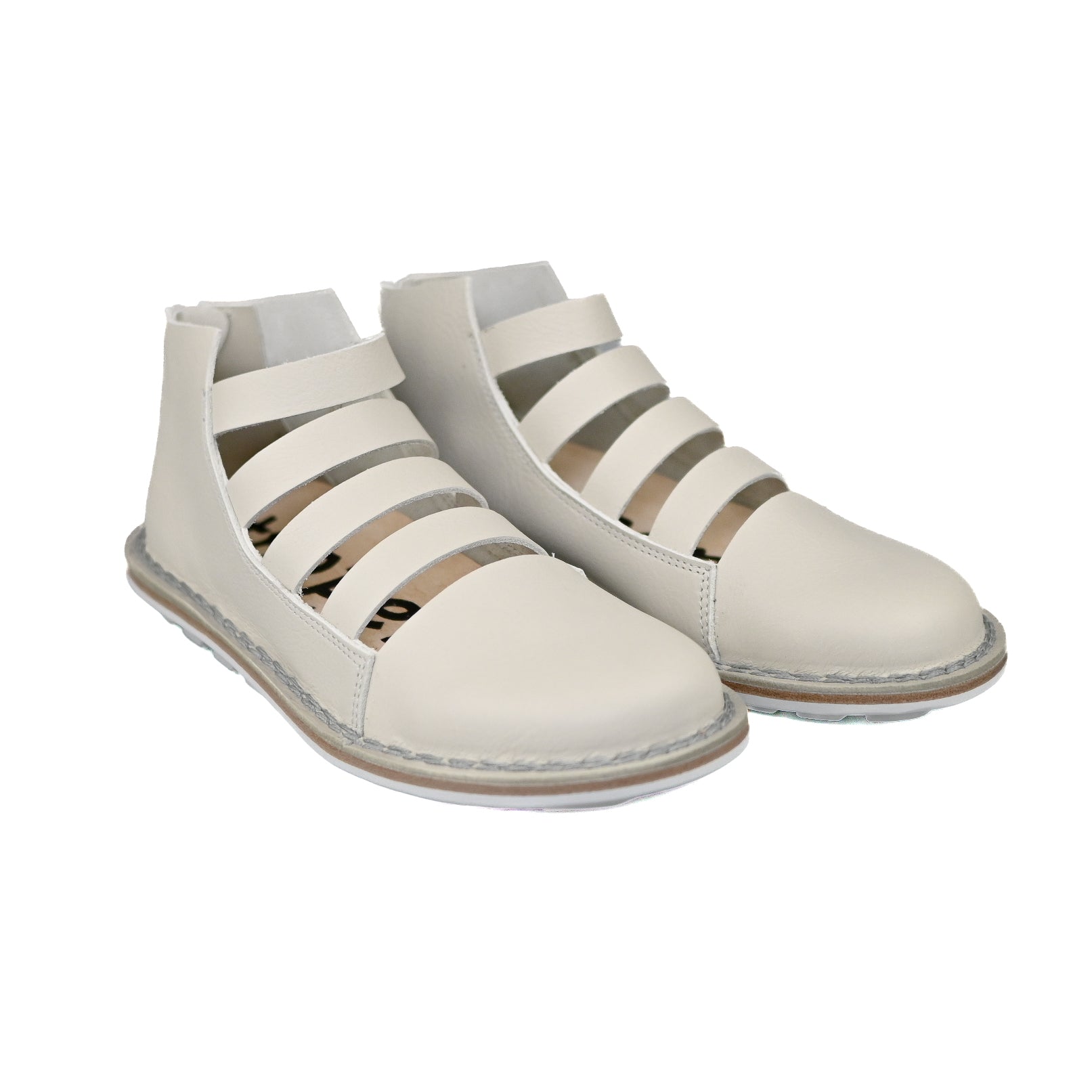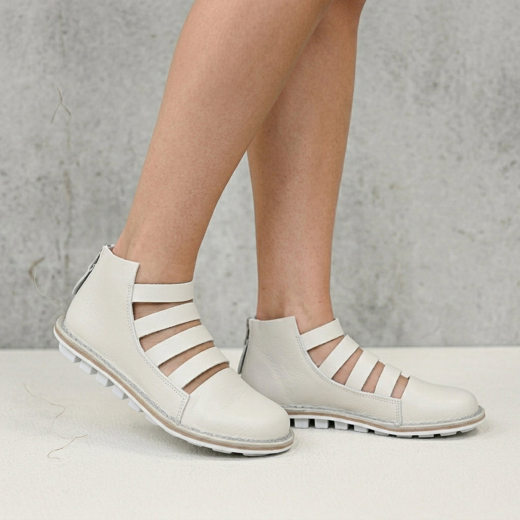 The closed toe balances the openness of the design, offering protection while keeping the overall look soft and approachable. Its ankle-high shape provides gentle support, making it suitable for everyday wear.