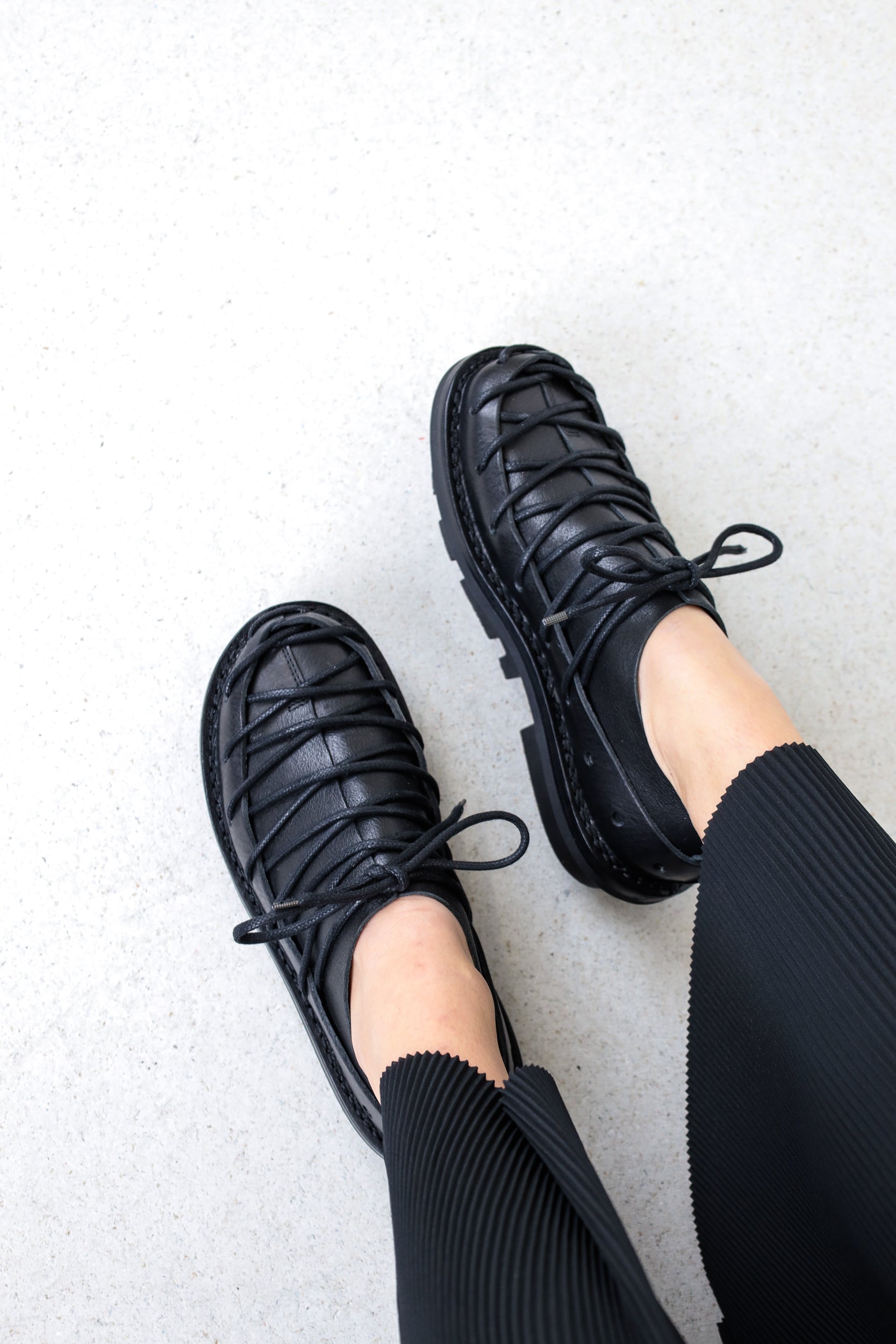 Tidehold reimagines the classic lace-up with a distinctive all-around lacing design that loops across the instep and around the side panel, creating a soft yet structured silhouette. The open lace construction offers flexible support while giving the shoe a sculptural and fashion-forward presence. Feminine in form yet grounded in strength, this style is exclusively available in women’s sizing and is built on the bold Trace sole.