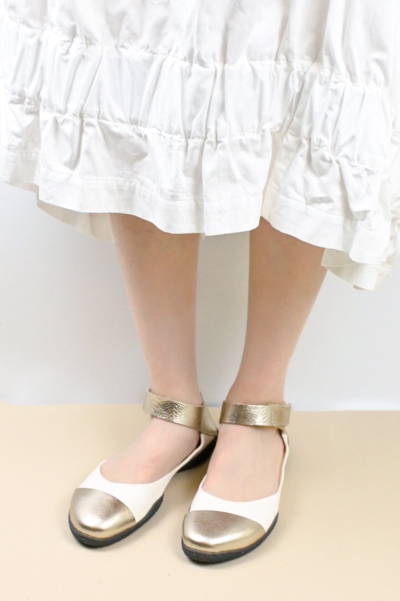 The Tilda style is an elegant and contemporary Mary Jane-inspired flat, designed with a secure ankle strap and a rounded toe for a timeless yet modern look. Its contrasting toe cap and sleek, curved sole add a touch of refinement, seamlessly blending sophistication with everyday comfort.