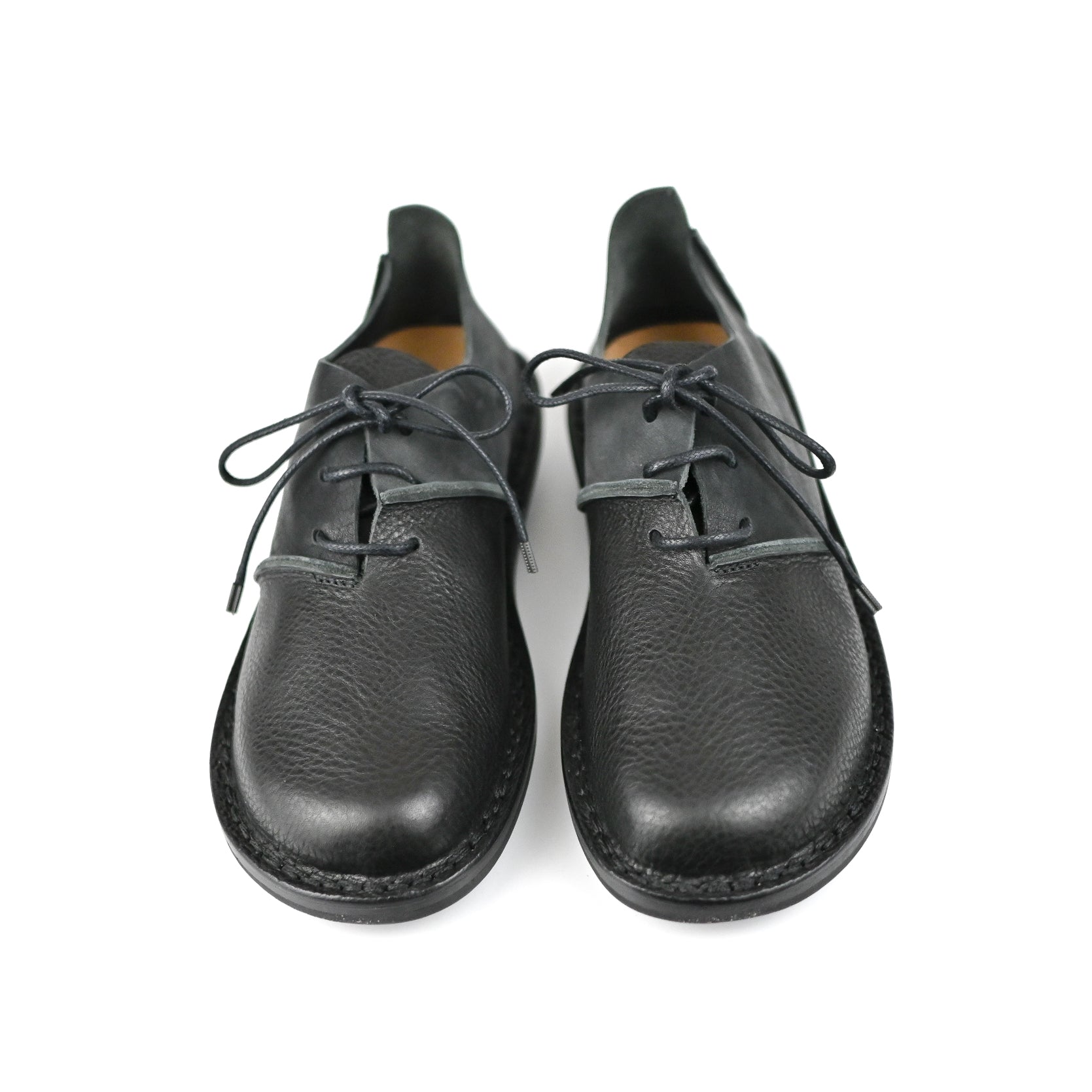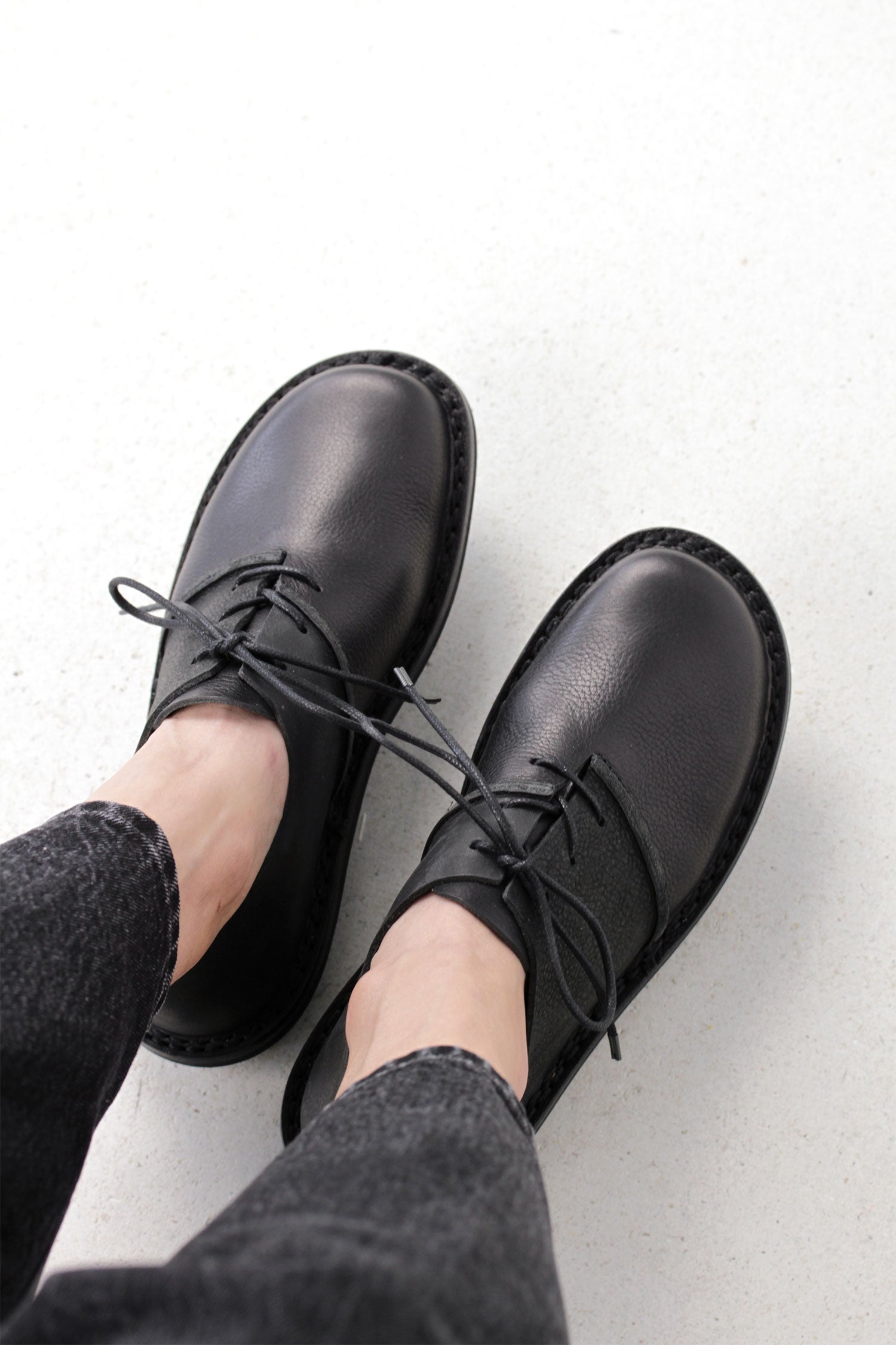 Triad is a thoughtfully designed lace-up shoe that combines three different types of leather: WAW, TIZ and PUL. This unique mix brings together a casual ease, formal elegance and stylish edge in one versatile design. The overlapping leather panels create a sense of depth and softness while highlighting the contrast in texture for a subtle yet distinctive look.