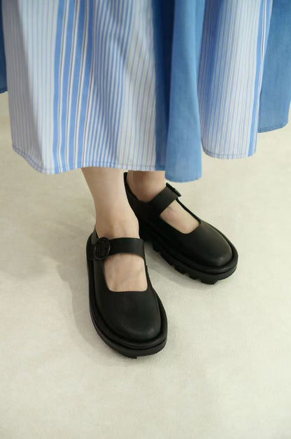 Ohjane 以大胆而现代的风格重新诠释了经典的 Mary Jane风格。这款鞋采用厚皮革贴边搭配特色Trace 鞋底,将永恒的优雅与现代风格融为一体。圆形带扣确保稳固且可调节的贴合度,而坚固的鞋底则提供稳定性和舒适性。